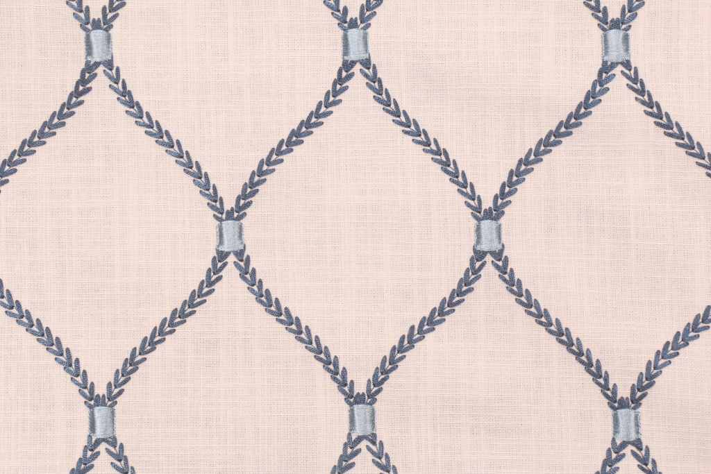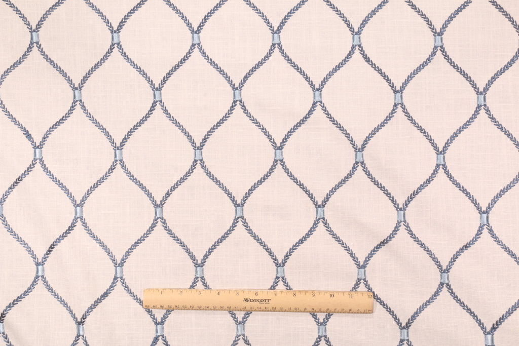 Williamsburg Deane Embroidery Drapery Fabric in Porcelain is a remnant, which is sold as a whole piece.