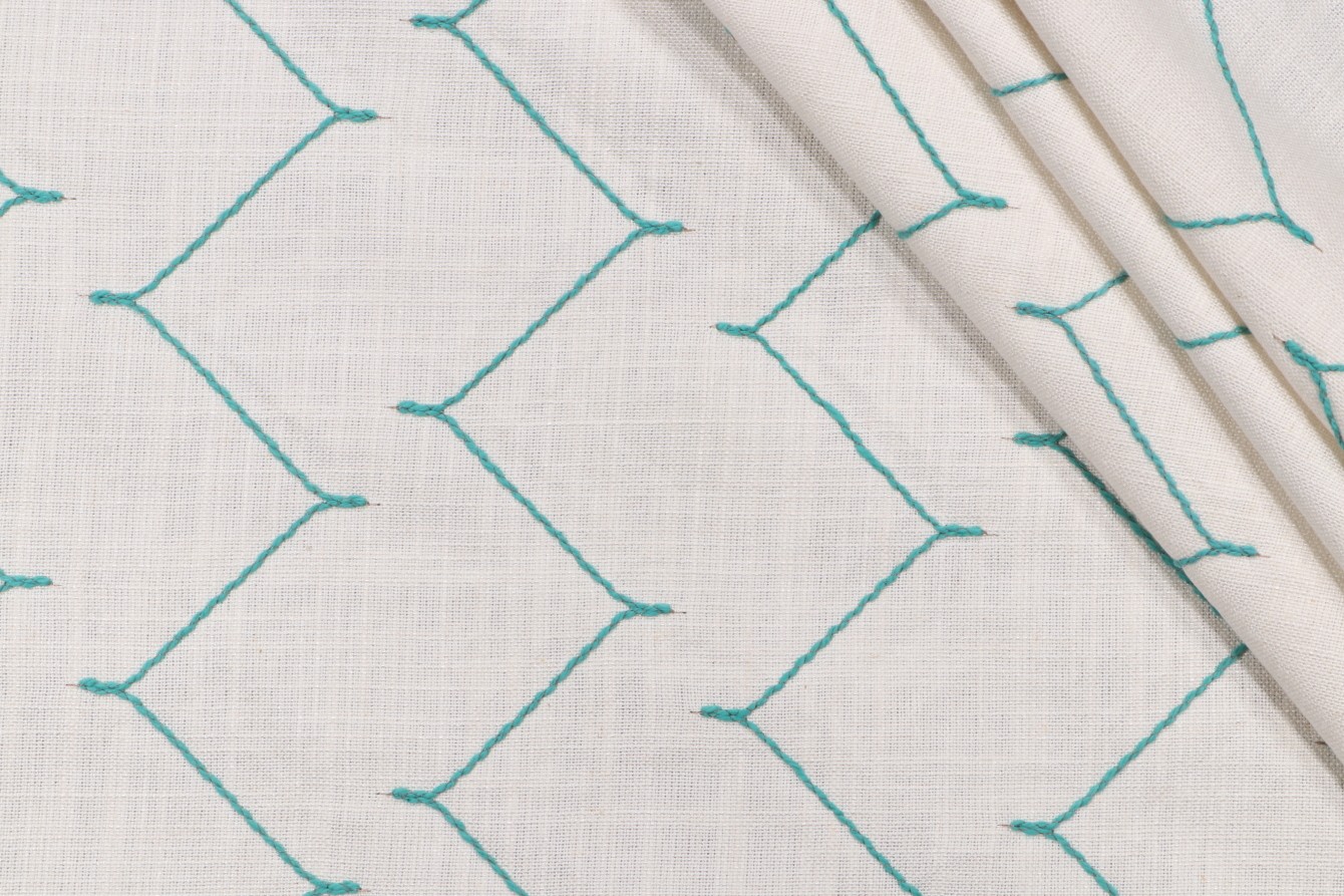 1 Yards Winterset Embroidered Drapery Fabric in Turquoise Details