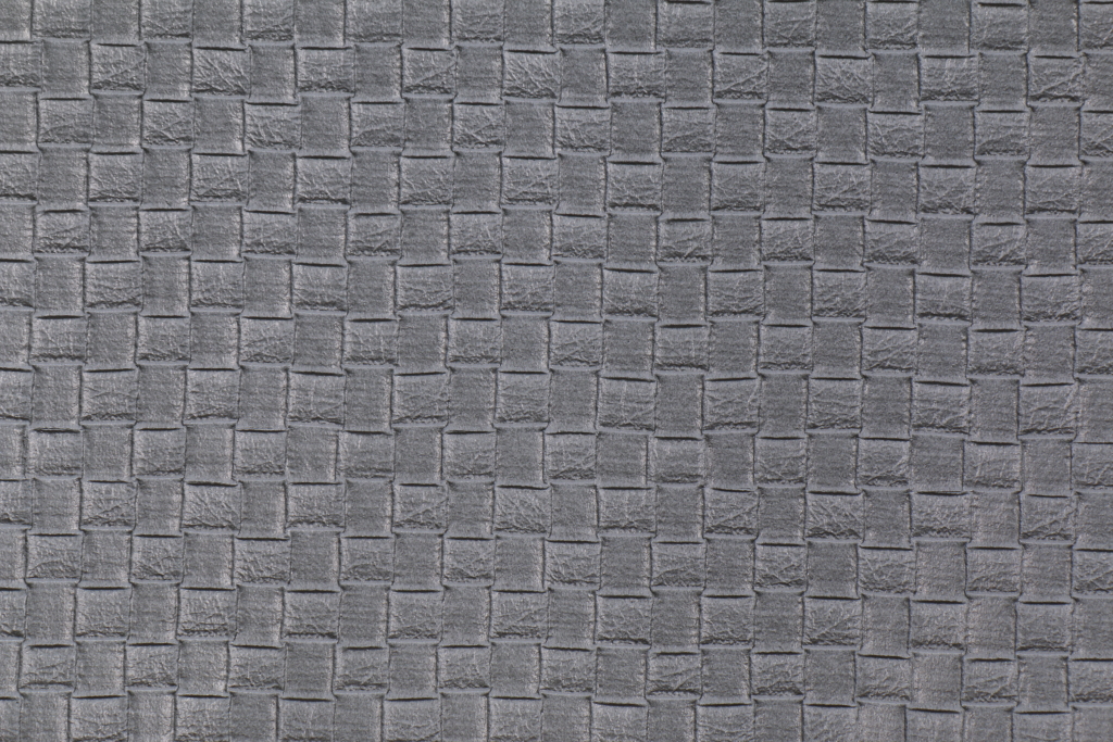 Bottega Patterned Vinyl Upholstery Fabric in Bluestone. This high end woven upholstery weight fabric is suited for uses requiring a more durable designer fabric. Uses include any upholstery project, sofas, chairs, dining chairs, pillows, certain types of window treatments, handbags and craft projects.