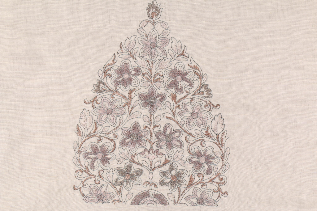 Embroidered Linen Decorator Fabric in Twilight. This high-end woven decorator fabric is suited for multiple project applications. The weight is excellent for drapery projects, decorative pillows, coverlets, shams and light duty upholstery projects.