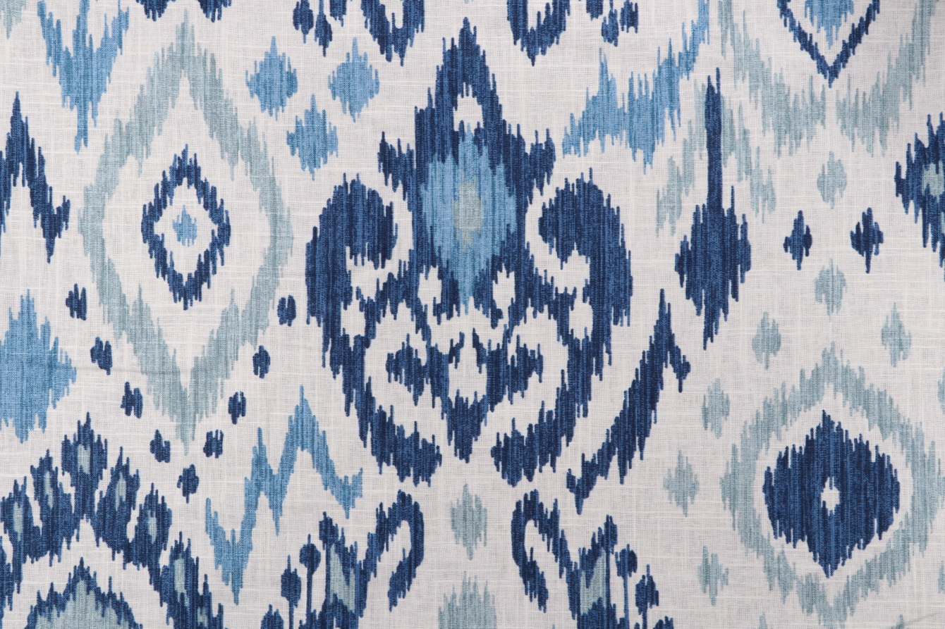 Fabricut Vern Yip Trend #3 Ikat Printed Linen Blend Drapery Fabric in Blue Details