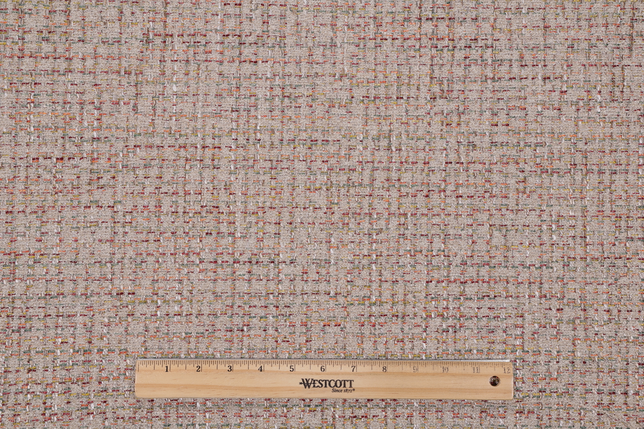 If you order a sample of Maggie Woven Upholstery Fabric in Marble the size of the swatch you receive will be approximately 4" x 6". This is enough fabric to verify color and texture, but may not be large enough to capture an entire pattern.