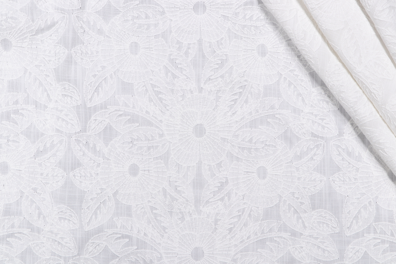 Valiant Fabrics Cynthia Embroidered Decorator Fabric in Off White Details