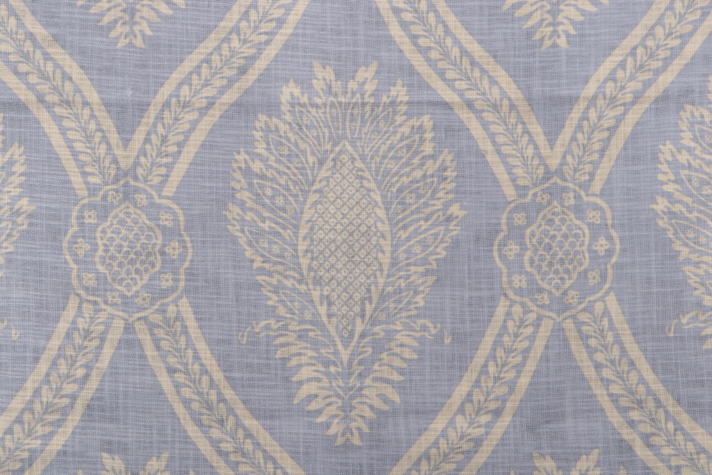 Jaclyn Smith Home JSP007 Printed Linen Blend Drapery Fabric in Cornflower is a remnant, which is sold as a whole piece.