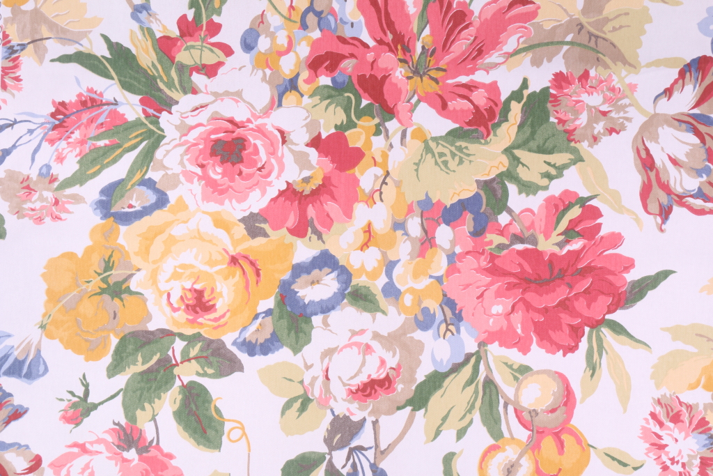 14.5 Yards Kaufmann Floral Printed Cotton Drapery Fabric. This printed fabric is perfect for window treatments, decorative pillows, handbags, light duty upholstery applications and almost any craft project. This fabric has a soft workable feel yet is stable and durable.
