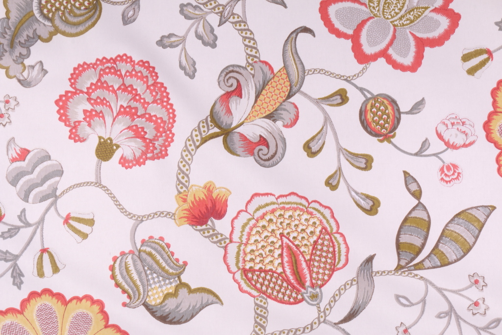Richloom Leopold Printed Cotton Drapery Fabric in Coral. This printed fabric is perfect for window treatments, decorative pillows, handbags, light duty upholstery applications and almost any craft project. This fabric has a soft workable feel yet is stable and durable.