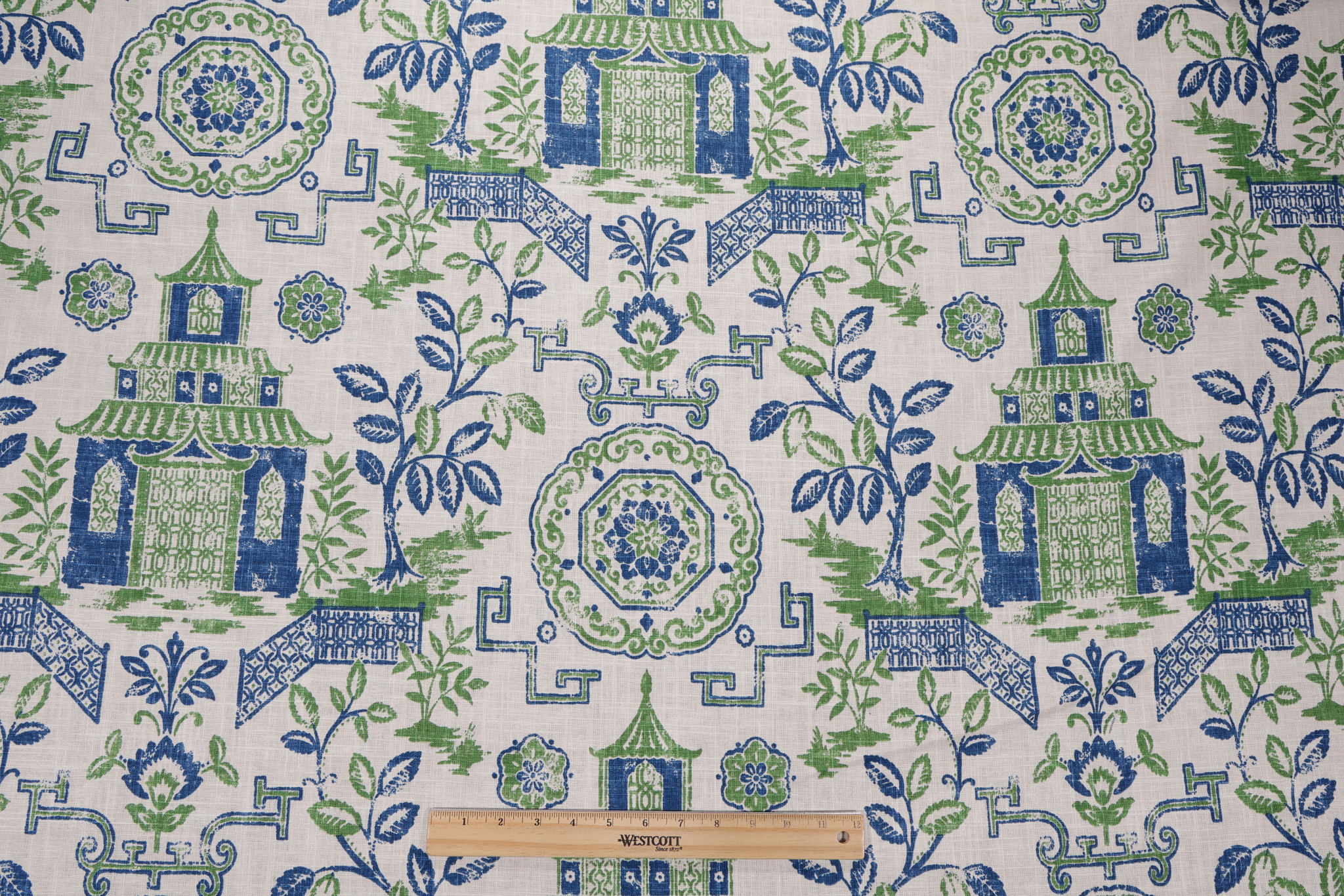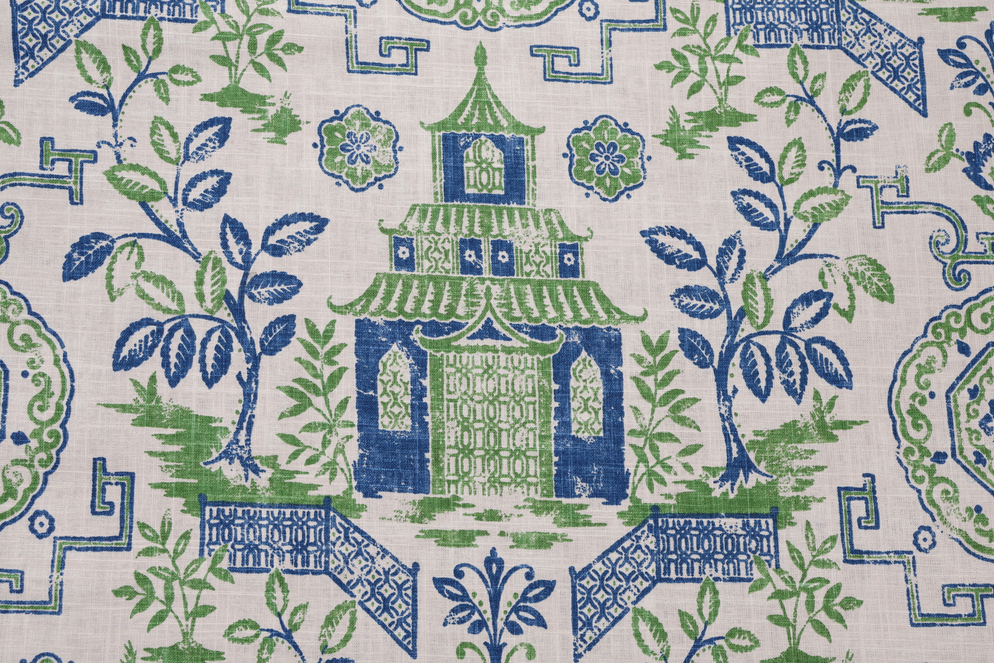 Richloom Teahouse Toile Printed Linen Blend Drapery Fabric in Kelly Details