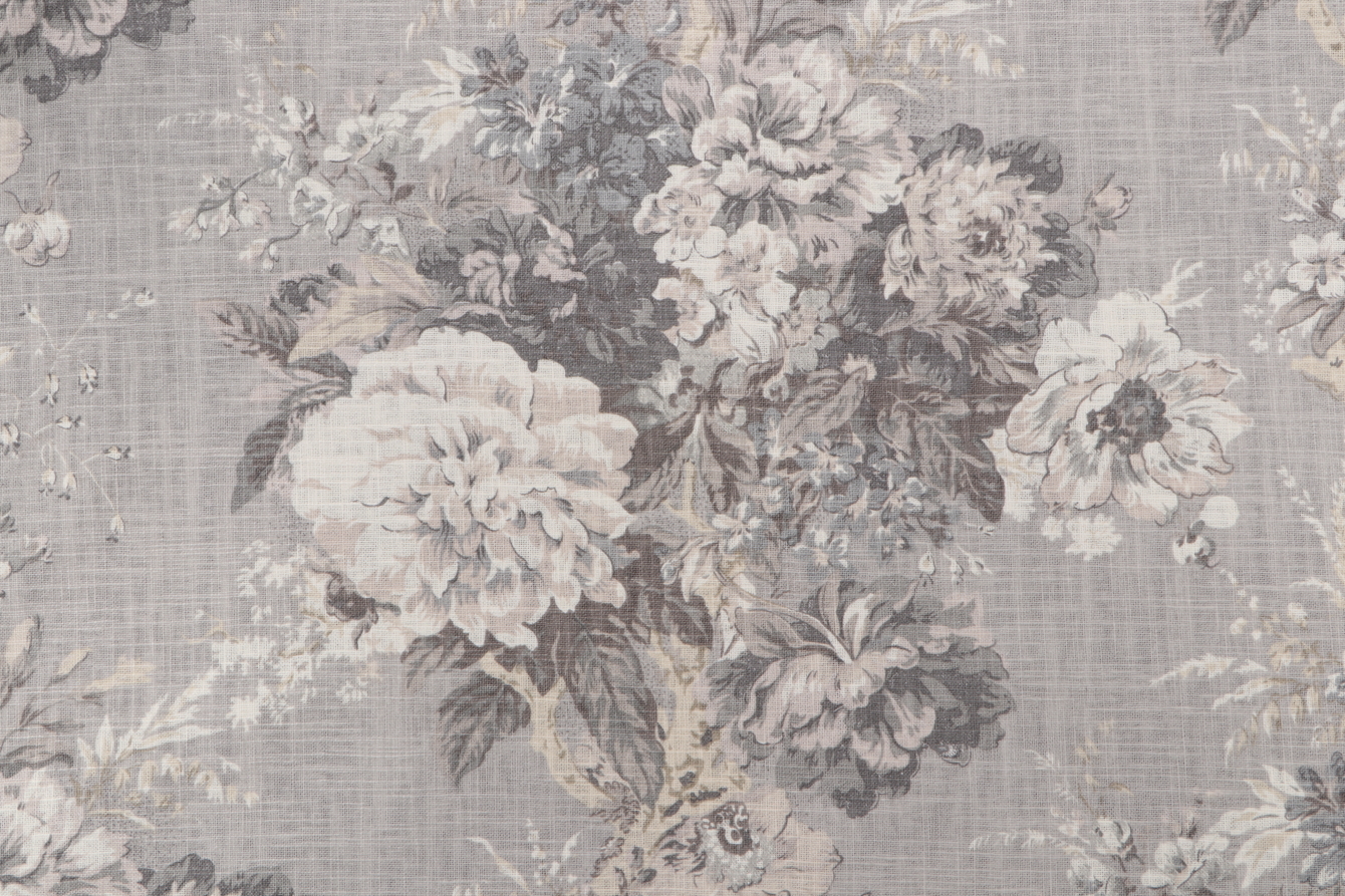 10 Yards Waverly Ballad Bouquet Printed Linen Blend Drapery Fabric in Platinum Details