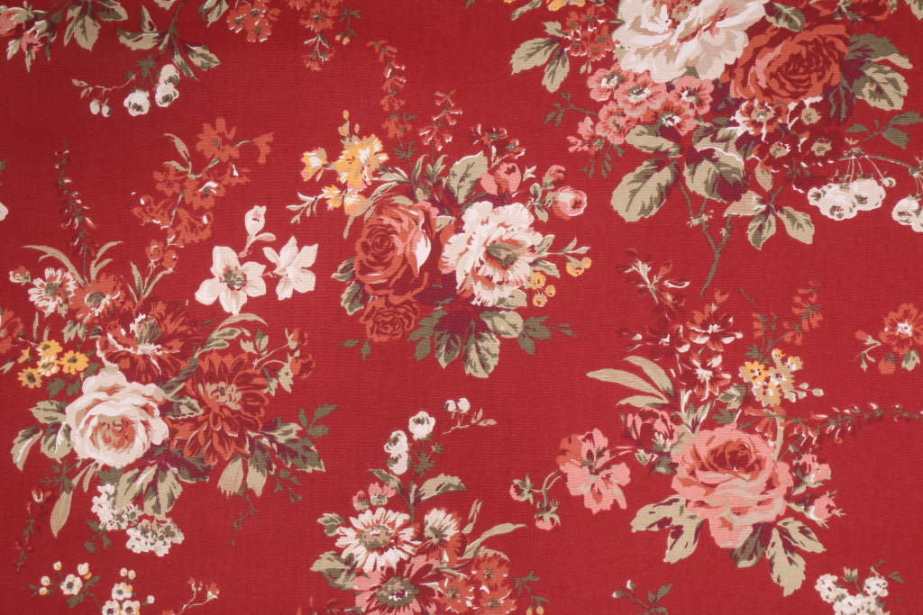 4 Yards Waverly Rose Floral Printed Cotton Drapery Fabric in Red. This printed fabric is perfect for window treatments, decorative pillows, handbags, light duty upholstery applications and almost any craft project. This fabric has a soft workable feel yet is stable and durable.