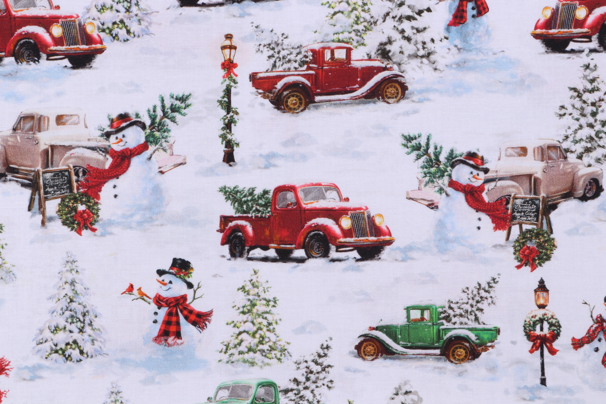 This sample of Dona Gelsinger Frosty Delights - Snowman & Trucks Printed Cotton Craft Fabric in White for Timeless Treasures will ship by USPS Priority mail within 2-3 business days. Yes, when you order a sample of Dona Gelsinger Frosty Delights - Snowman & Trucks Printed Cotton Craft Fabric in White for Timeless Treasures we will send you a tracking code by email and/or SMS text message as soon as it ships. If you order a sample of Dona Gelsinger Frosty Delights - Snowman & Trucks Printed Cotton Craft Fabric in White for Timeless Treasures the size of the swatch you receive will be approximately 4" x 6". This is enough fabric to verify color and texture, but may not be large enough to capture an entire pattern.How soon will this sample ship?