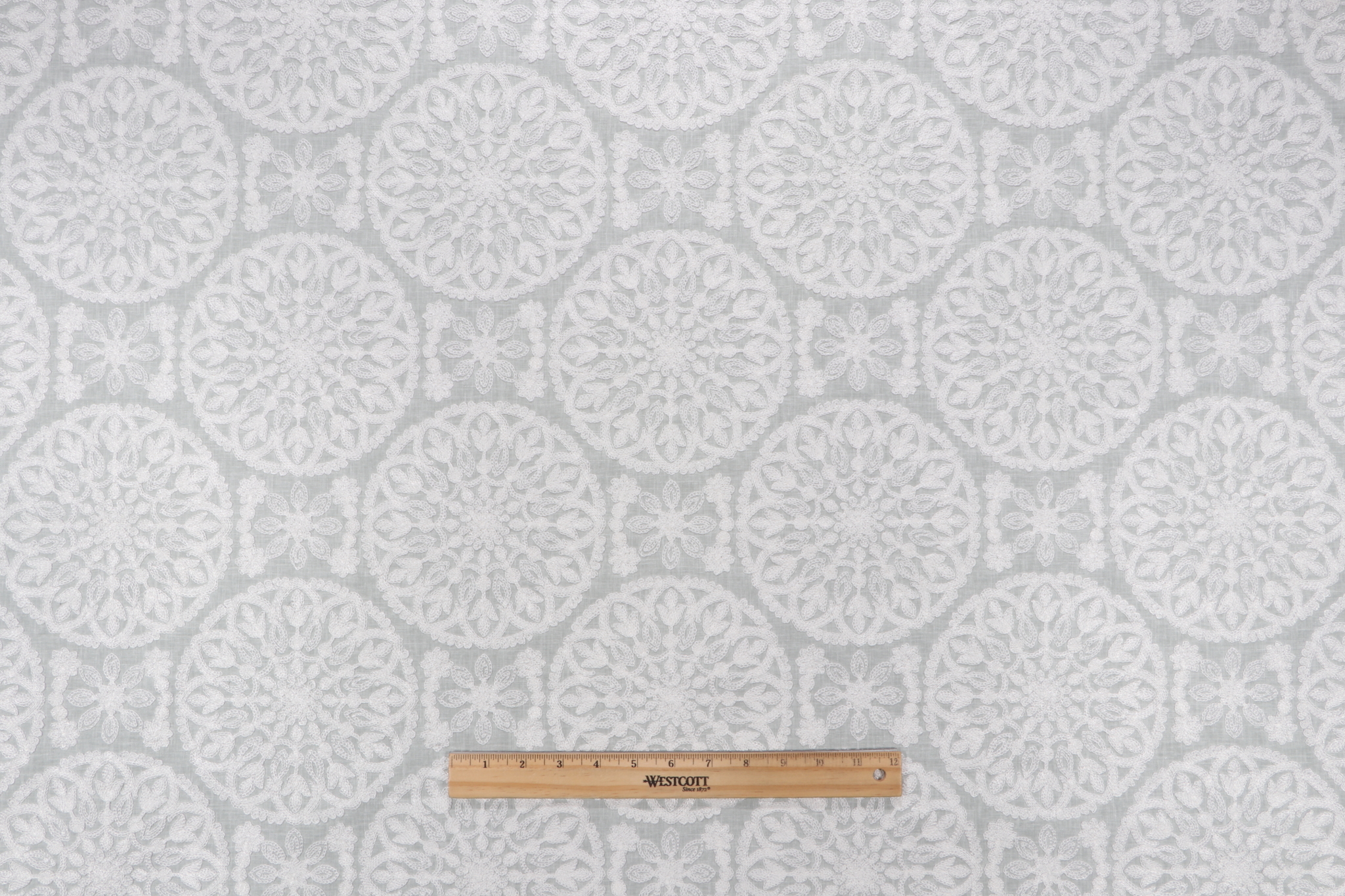 This sample of PK Lifestyles Lace Medallion Embroidered Decorator Fabric in Mist will ship by USPS Priority mail within 2-3 business days. Yes, when you order a sample of PK Lifestyles Lace Medallion Embroidered Decorator Fabric in Mist we will send you a tracking code by email and/or SMS text message as soon as it ships. If you order a sample of PK Lifestyles Lace Medallion Embroidered Decorator Fabric in Mist the size of the swatch you receive will be approximately 4" x 6". This is enough fabric to verify color and texture, but may not be large enough to capture an entire pattern.How soon will this sample ship?