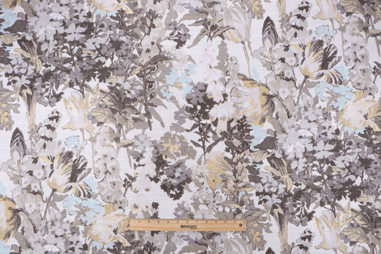 This sample of PK Lifestyles Summer Ready Printed Cotton Blend Drapery Fabric in Cloud will ship by USPS Priority mail within 2-3 business days.