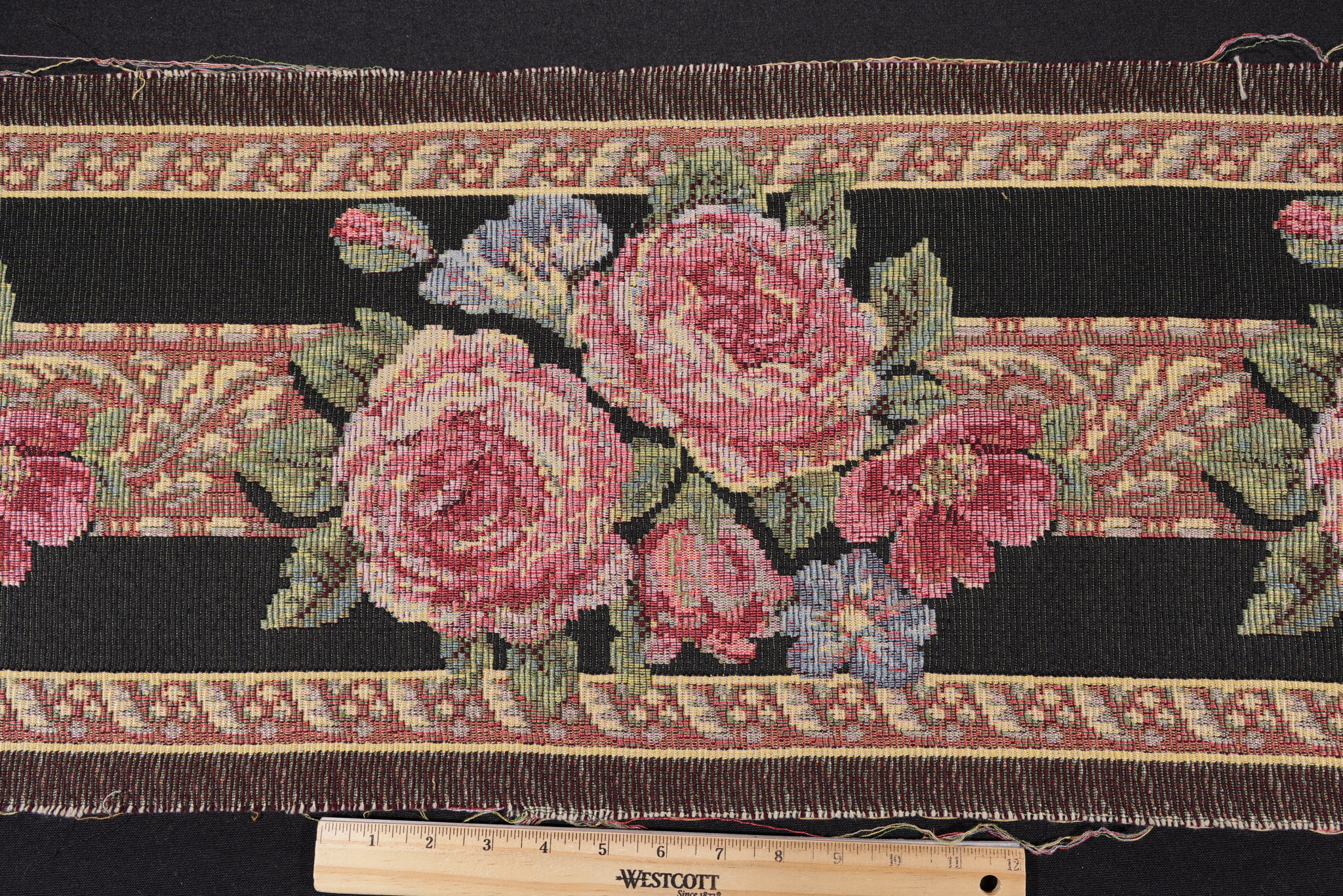 This sample of Scalamandre Fiori Grande Border 11'' Tapestry Border Fabric in Black will ship by USPS Priority mail within 2-3 business days. Yes, when you order a sample of Scalamandre Fiori Grande Border 11'' Tapestry Border Fabric in Black we will send you a tracking code by email and/or SMS text message as soon as it ships. If you order a sample of Scalamandre Fiori Grande Border 11'' Tapestry Border Fabric in Black the size of the swatch you receive will be approximately 4" x 6". This is enough fabric to verify color and texture, but may not be large enough to capture an entire pattern.How soon will this sample ship?