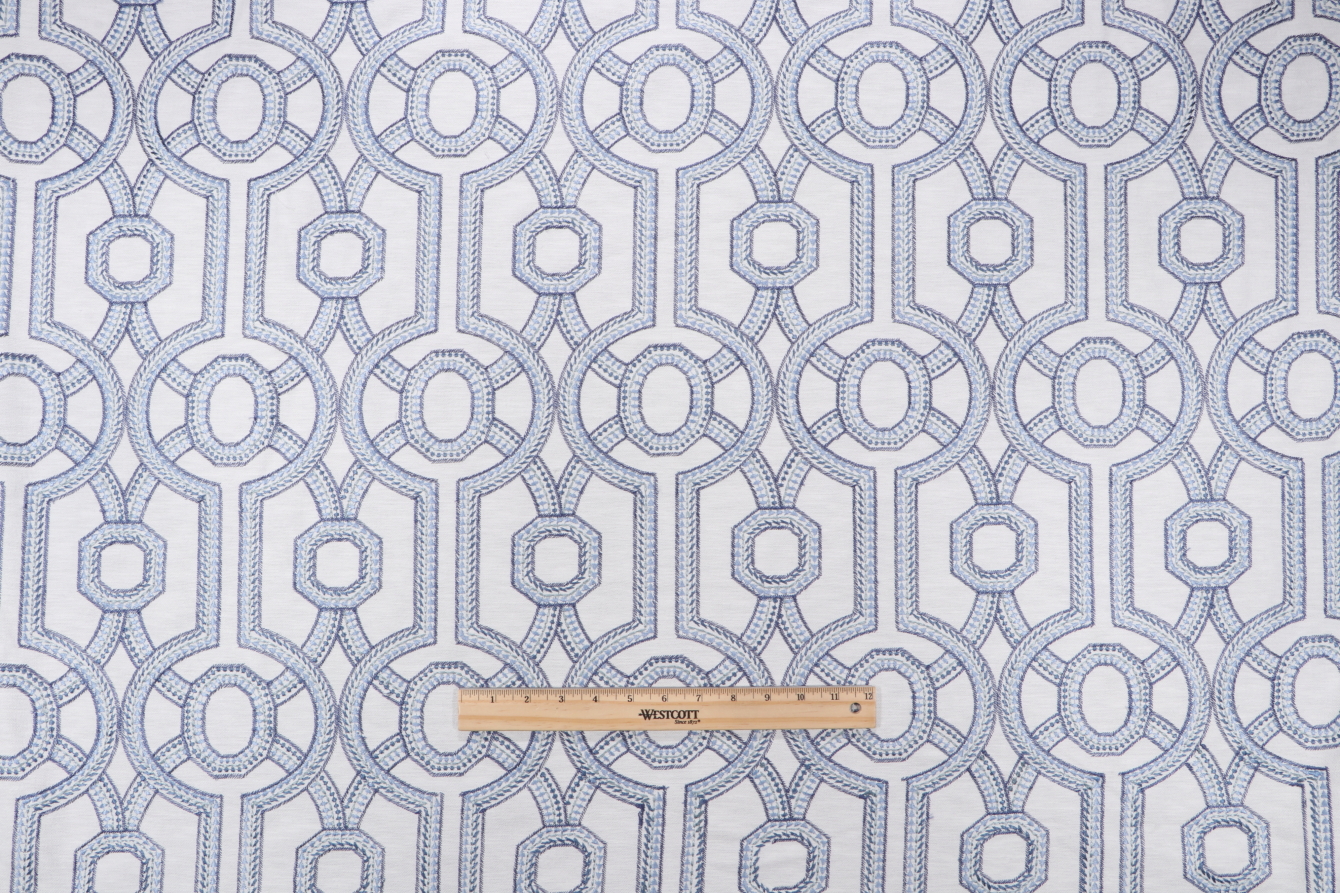 This sample of Valiant Fabrics Merritt Embroidered Decorator Fabric in Nautical will ship by USPS Priority mail within 2-3 business days. Yes, when you order a sample of Valiant Fabrics Merritt Embroidered Decorator Fabric in Nautical we will send you a tracking code by email and/or SMS text message as soon as it ships. If you order a sample of Valiant Fabrics Merritt Embroidered Decorator Fabric in Nautical the size of the swatch you receive will be approximately 4" x 6". This is enough fabric to verify color and texture, but may not be large enough to capture an entire pattern.How soon will this sample ship?