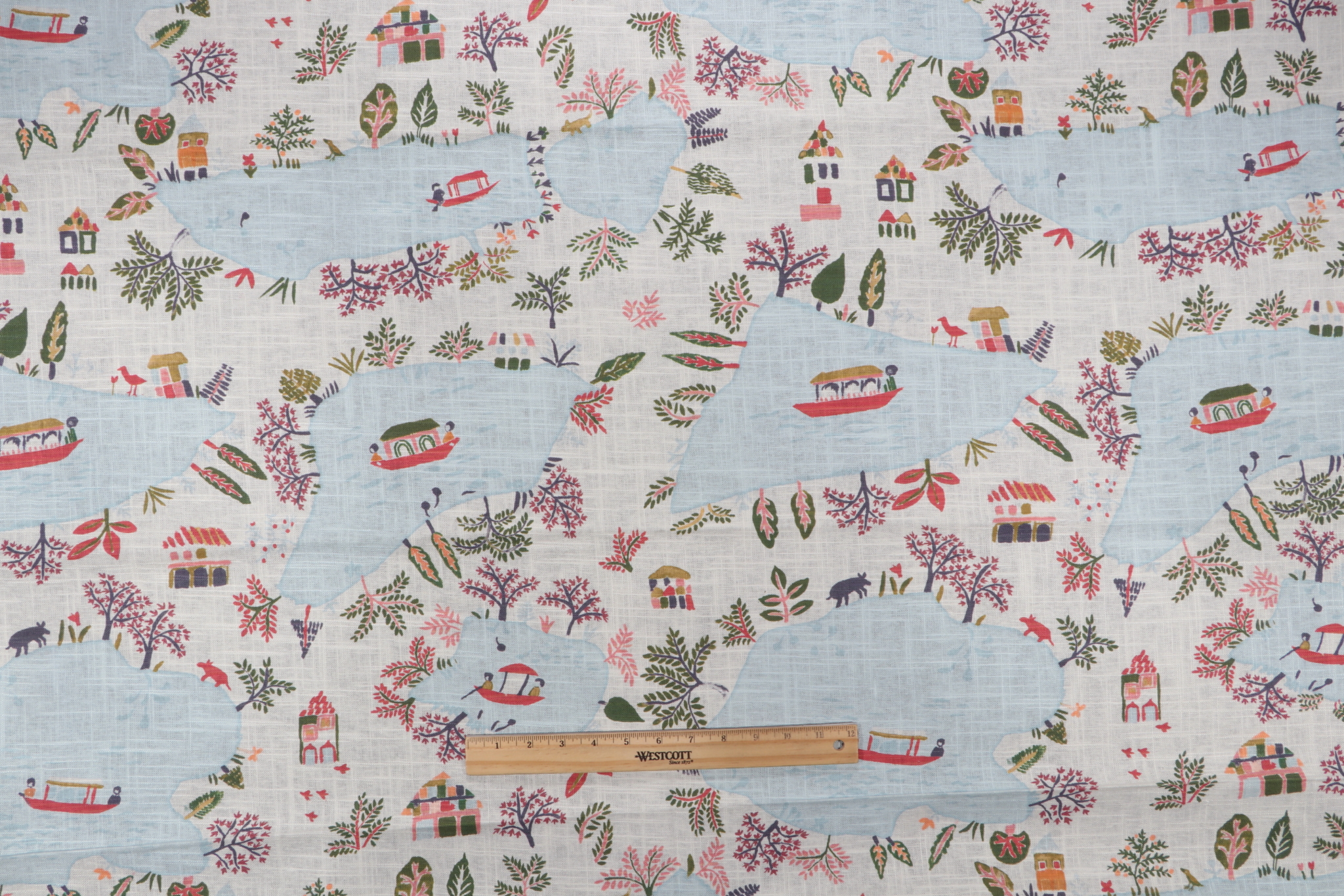 1 Yard Como Toile Printed Linen Drapery Fabric in Aqua Details