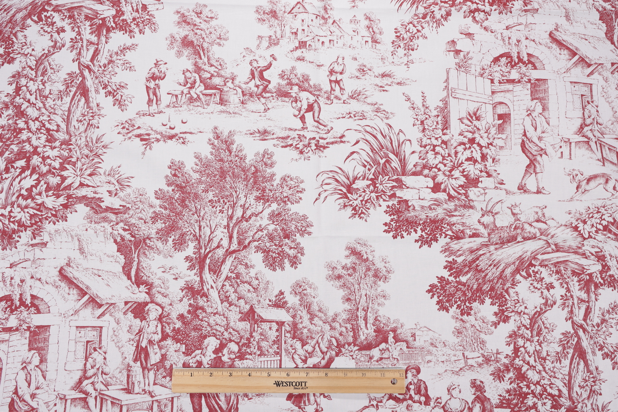 1.13 Yards Dutton Toile Printed Cotton Drapery Fabric in Red Details