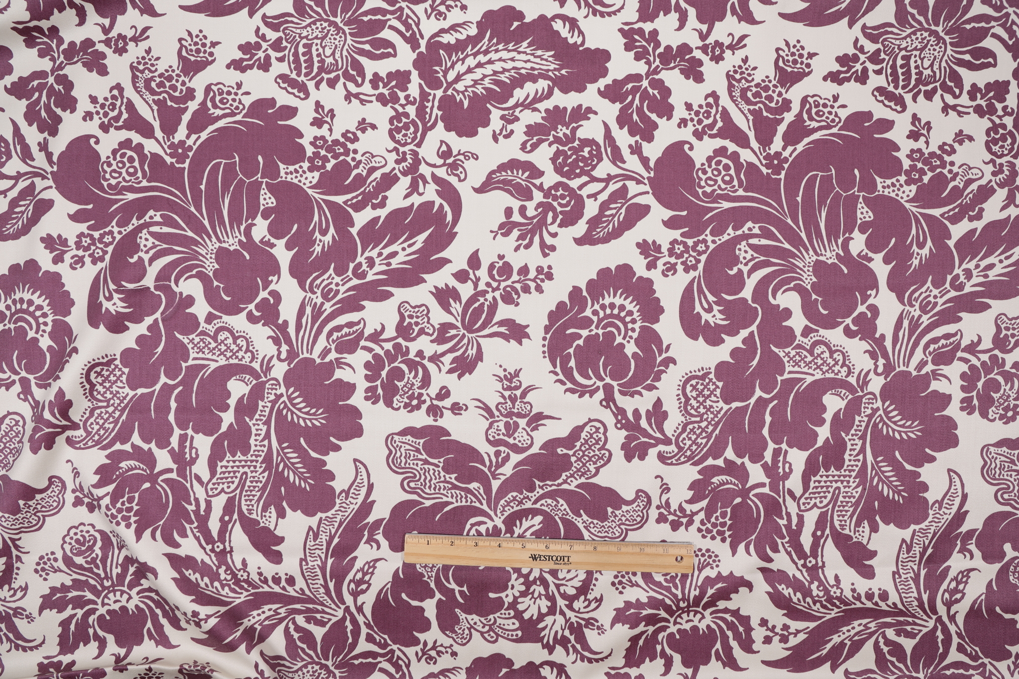 3.38 Yards Fonthill Elizabeth Damask Hand-Printed Wool Drapery Fabric in Grape Details