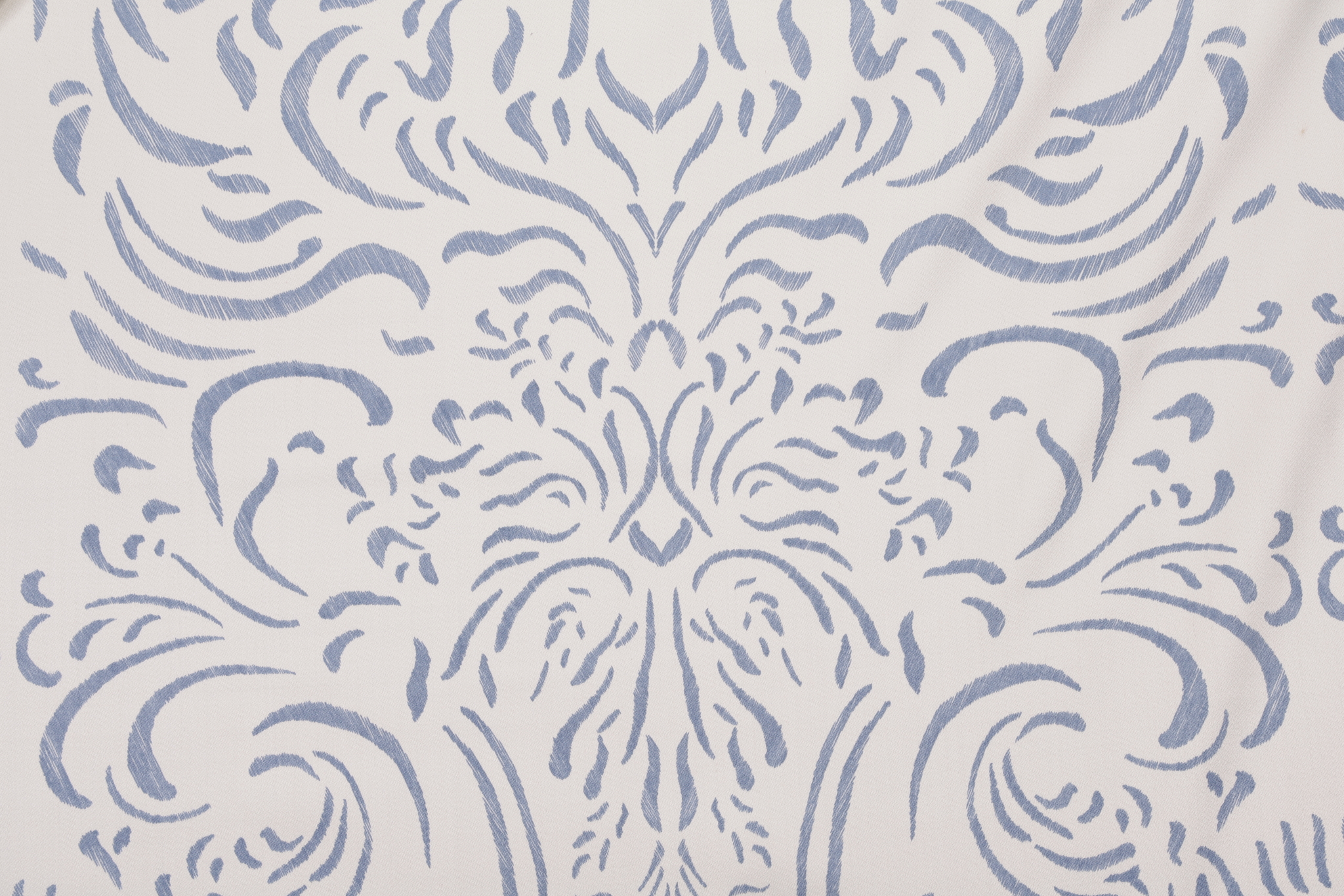 Presenting 3 yards of Pushkin Damask, an exquisite hand-printed wool drapery fabric by Fonthill. For discerning designers, Fonthill fabrics offers unmatched quality and sophistication. This fabric is suitable for short curtains, decorative tiebacks, or smaller window treatments. Gainsboro, dark gray, silver, light slate gray, and light steel blue are the primarily featured colors in this fabric. Note: If you are unsure about the suitability of this fabric for your specific use case please contact us prior to ordering.