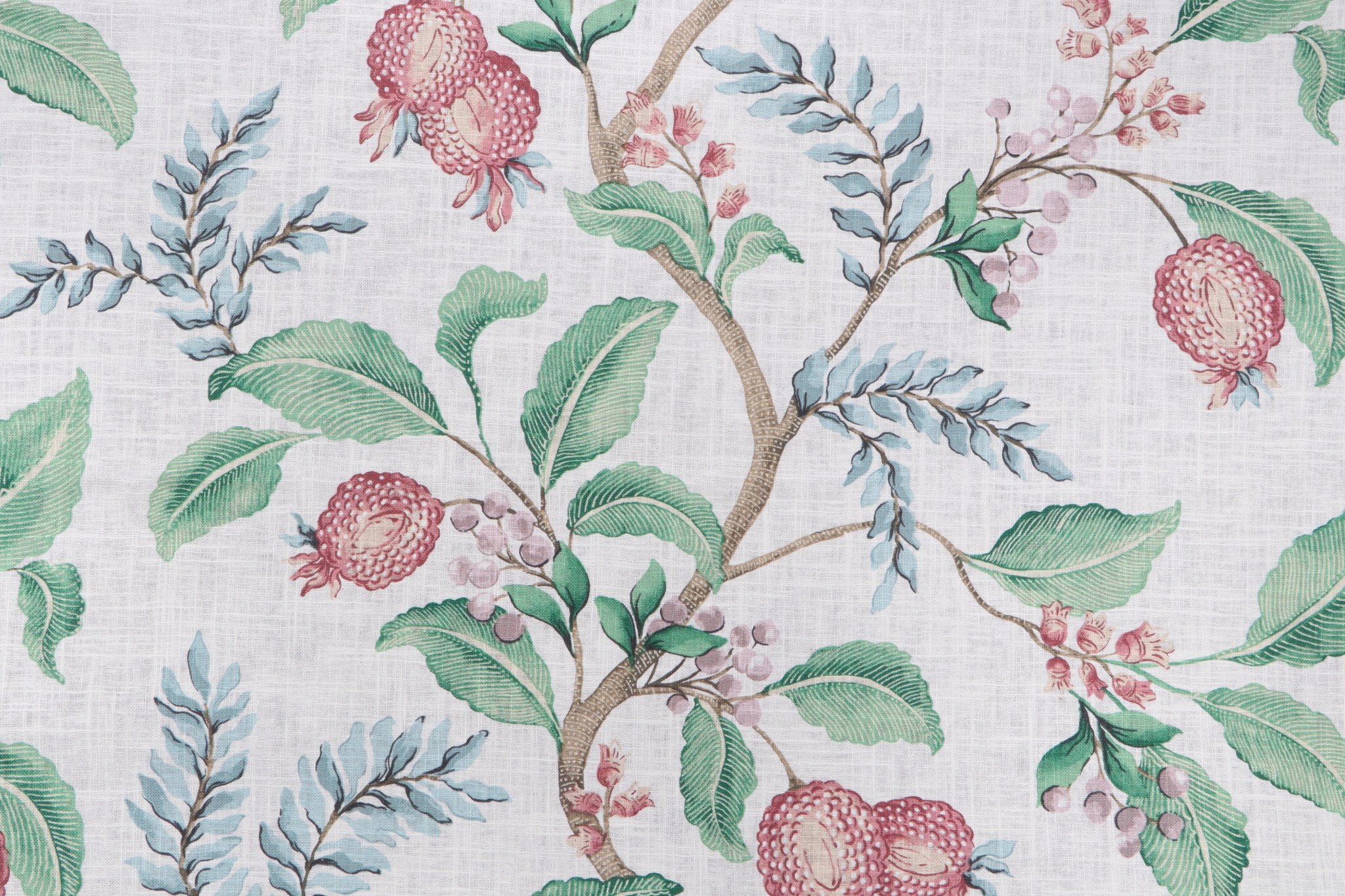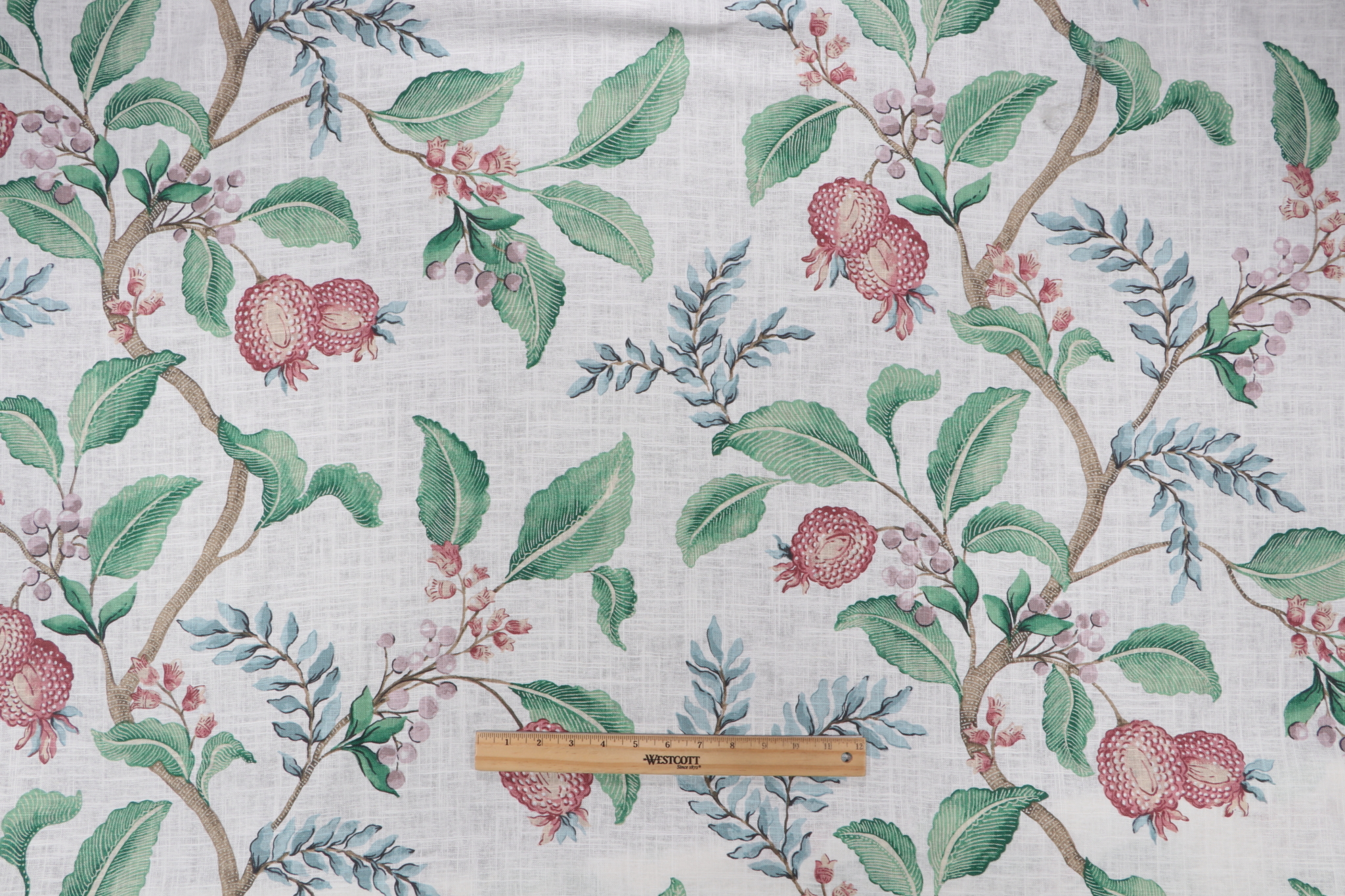 Featured here is 5.25 yards of Kendall Wilkinson Tylan printed linen drapery fabric from Fabricut. This fabric is suitable for short curtains, decorative tiebacks, or smaller window treatments. Note: If you are unsure about the suitability of this fabric for your specific use case please contact us prior to ordering.
