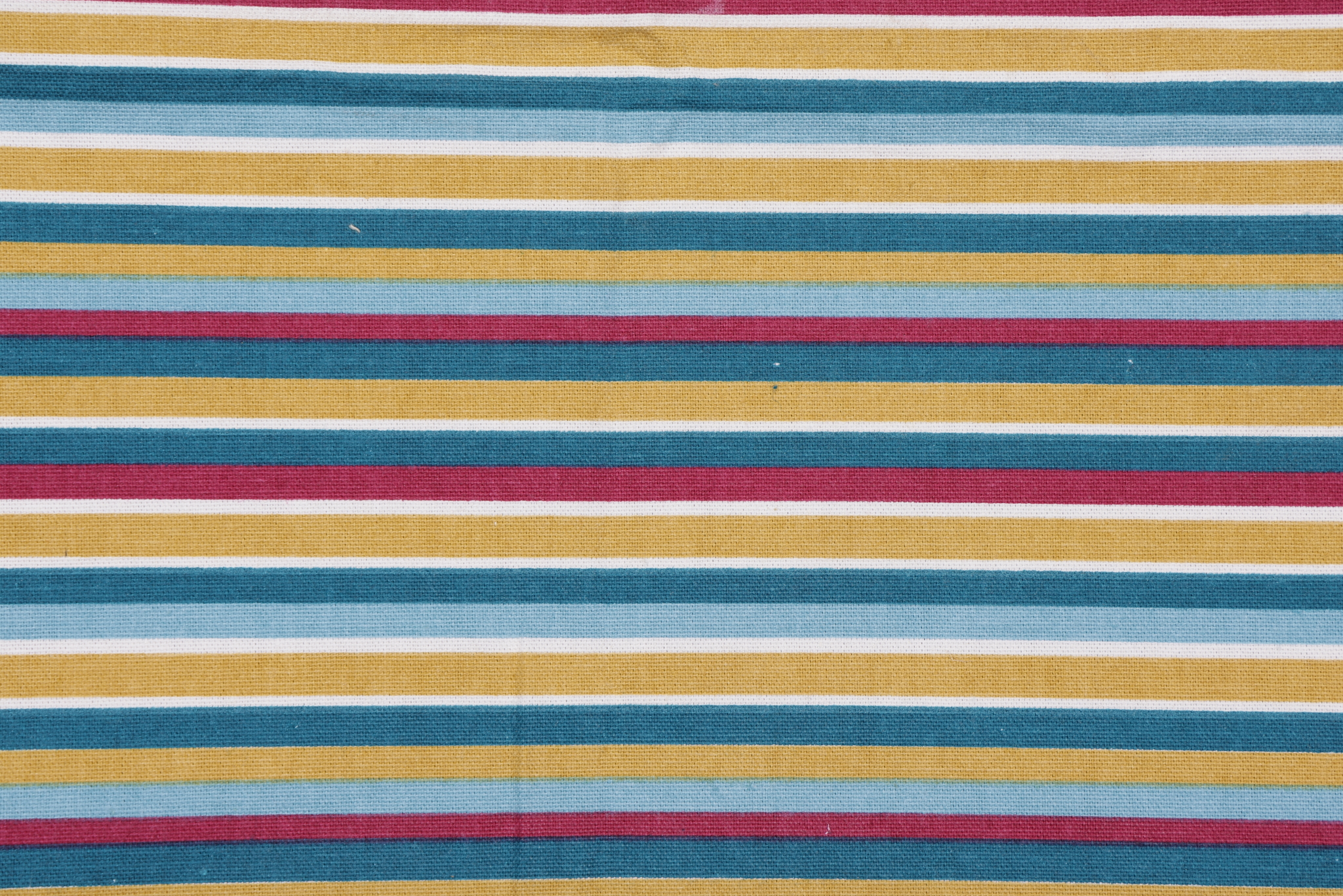 Richloom Stripe Printed Cotton Drapery Fabric in Multi is a remnant. Fabric remnants refer to leftover pieces of fabric from production runs at manufacturing sites or pieces that remain from by the yard stock. The lengths of these remnants can vary from a few inches to several yards and are typically sold at a reduced price, since they represent remaining inventory.