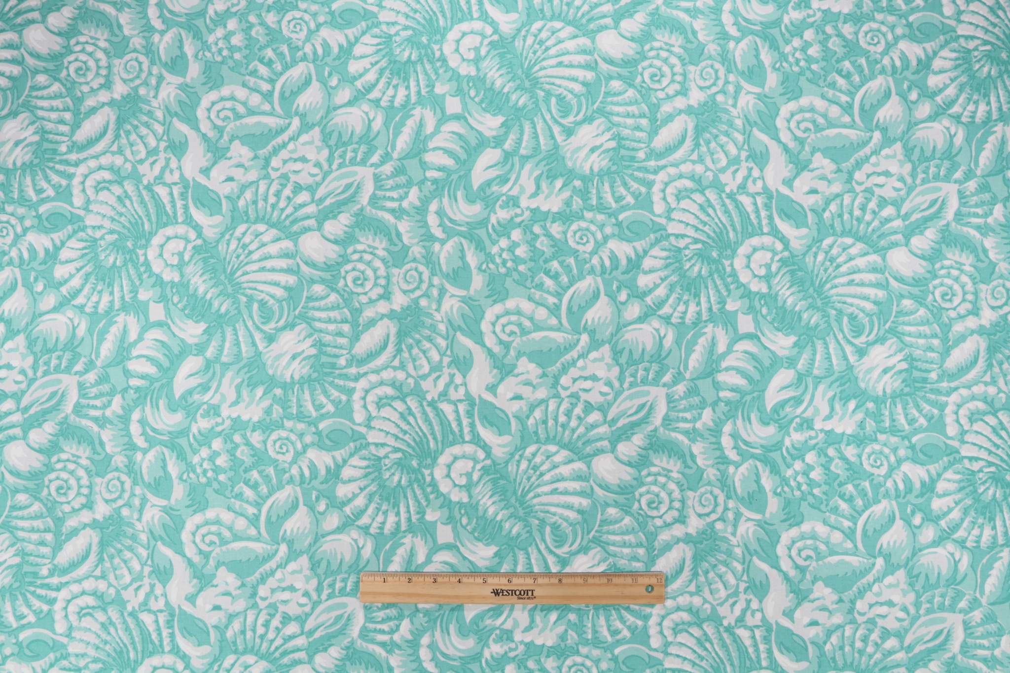 Scalamandre Seashell On Off White Cotton Printed Drapery Fabric in Green/White is a remnant, which is sold as a whole piece.