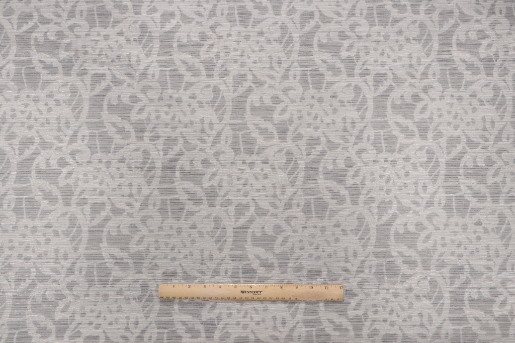 3.5 Yards Strie Damask Woven Decorator Fabric in Pewter Details