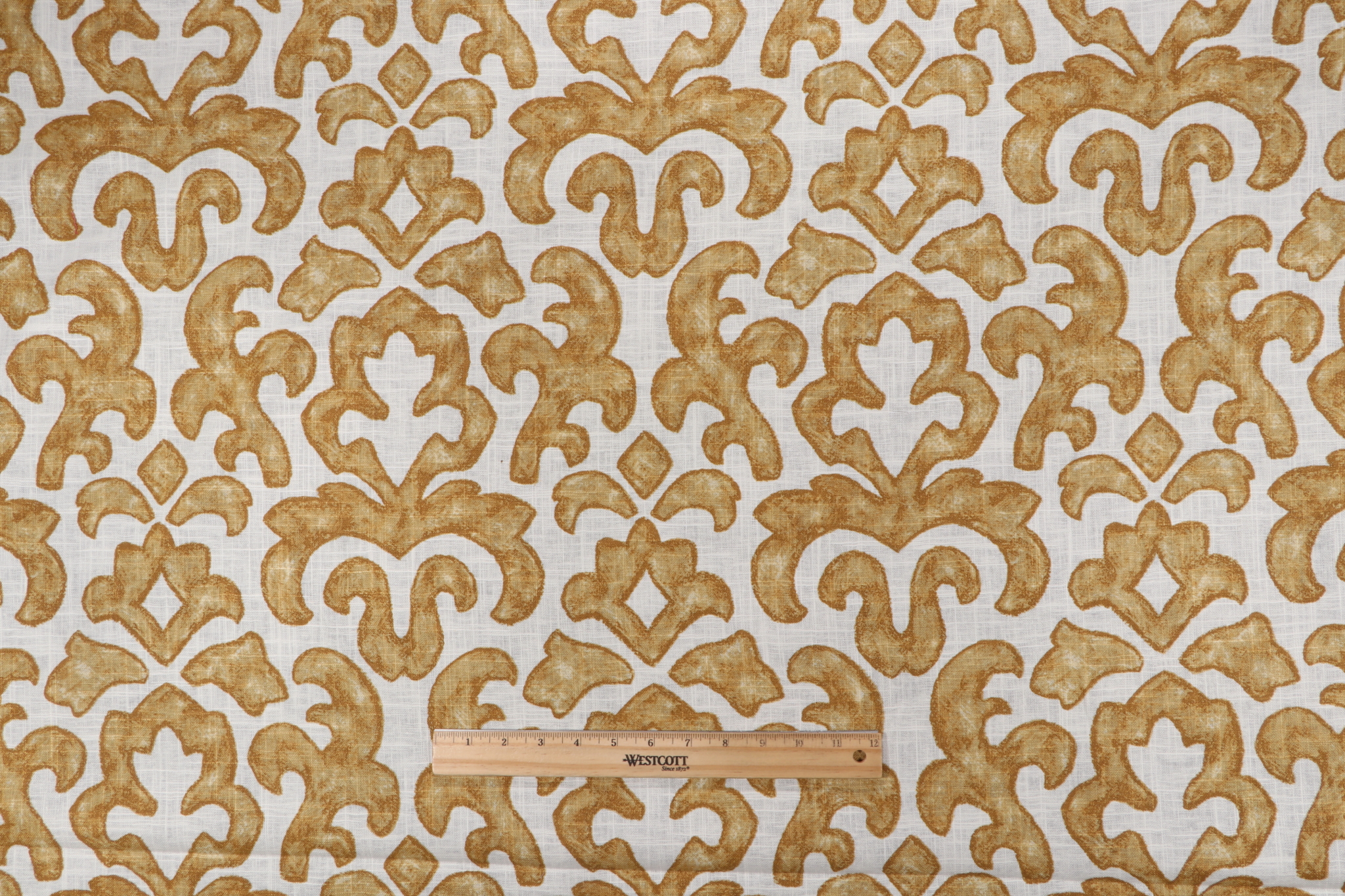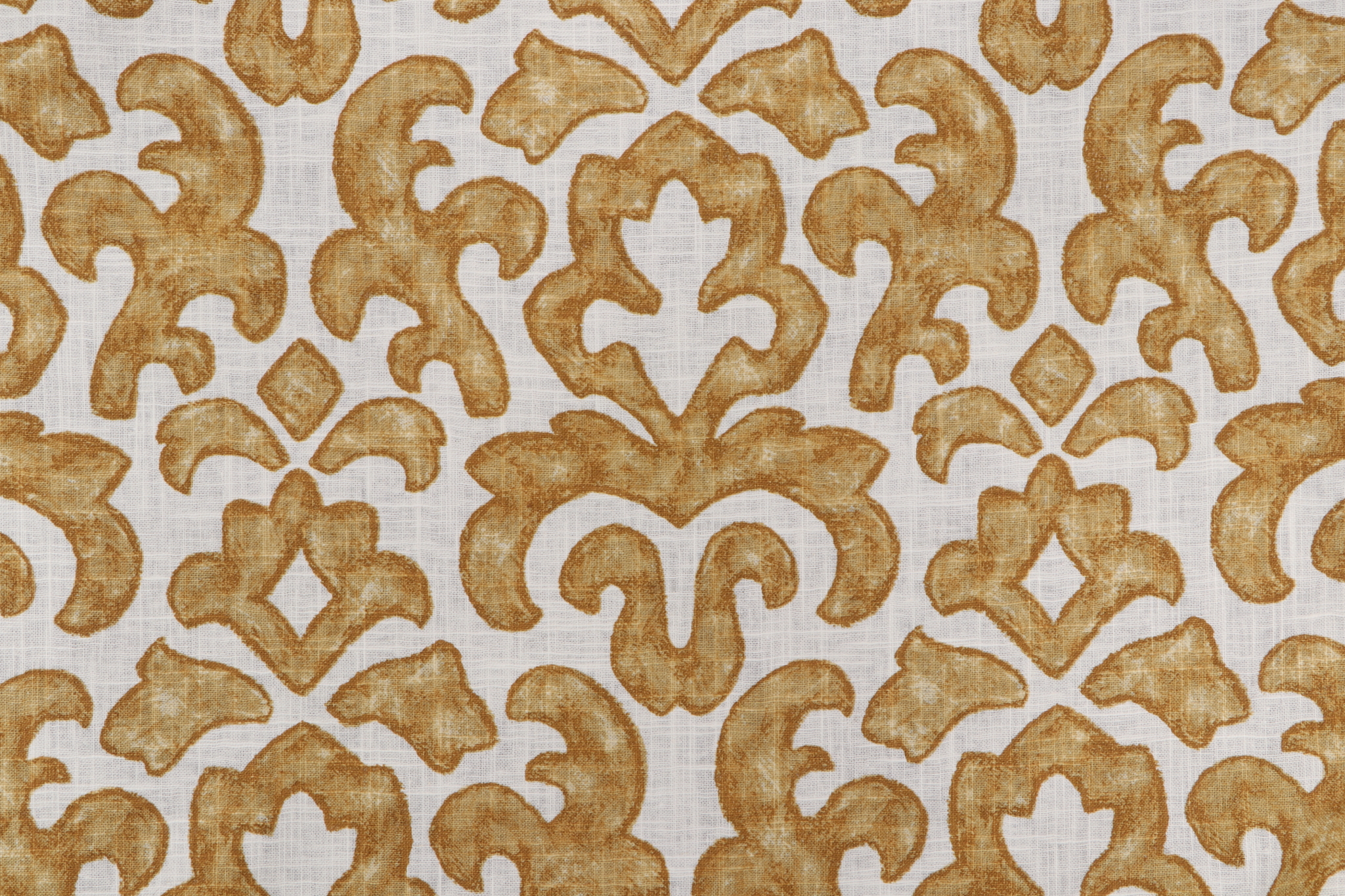 12.5 Yards Vern Yip Damask Printed Drapery Fabric in Gold for Fabricut Details