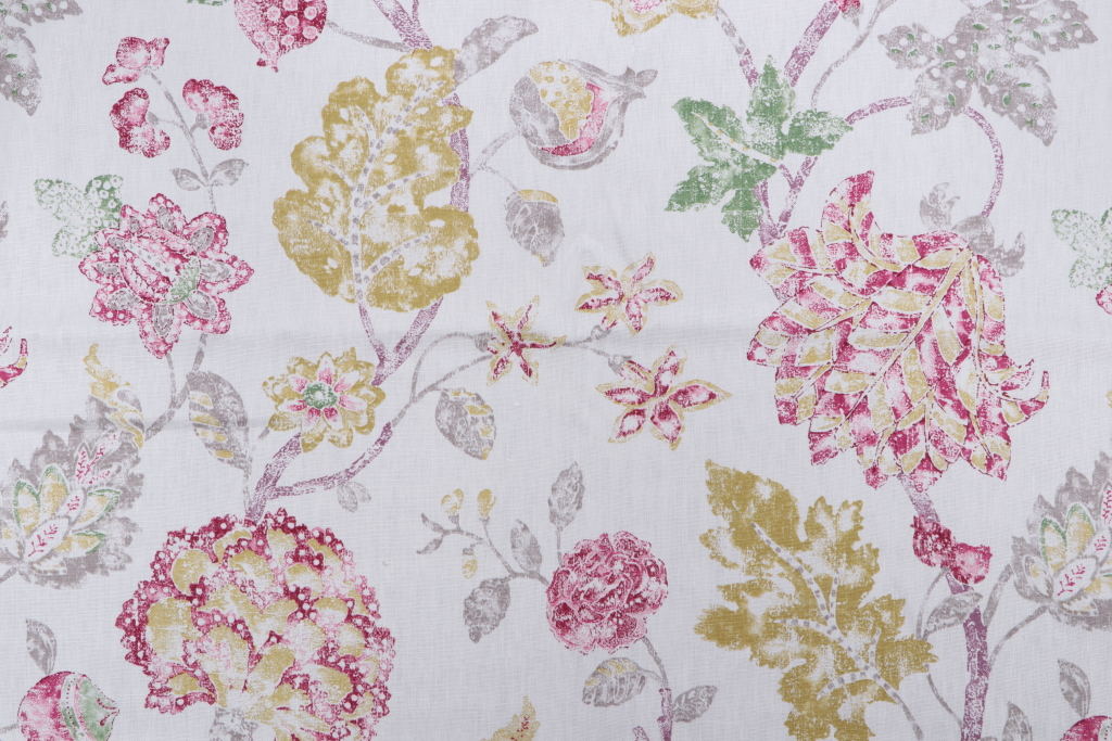 Alexander Printed Drapery Fabric in Flamingo is a remnant. Fabric remnants refer to leftover pieces of fabric from production runs at manufacturing sites or pieces that remain from by the yard stock. The lengths of these remnants can vary from a few inches to several yards and are typically sold at a reduced price, since they represent remaining inventory.