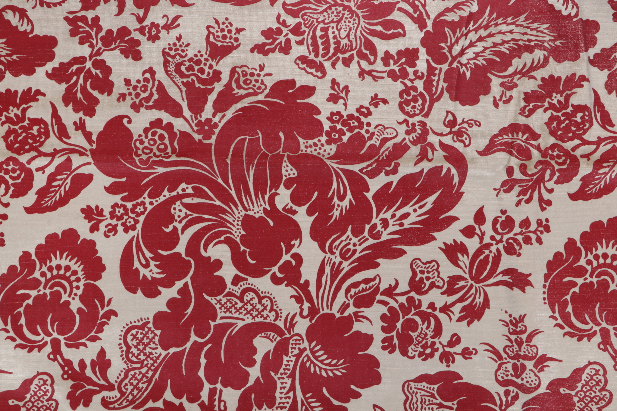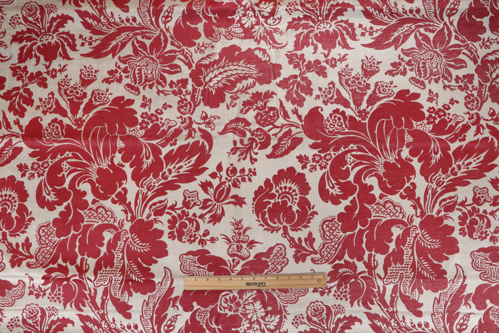 Fonthill Elizabeth Damask Printed Velvet Upholstery Fabric in Flamingo is a remnant. Fabric remnants refer to leftover pieces of fabric from production runs at manufacturing sites or pieces that remain from by the yard stock. The lengths of these remnants can vary from a few inches to several yards and are typically sold at a reduced price, since they represent remaining inventory.
