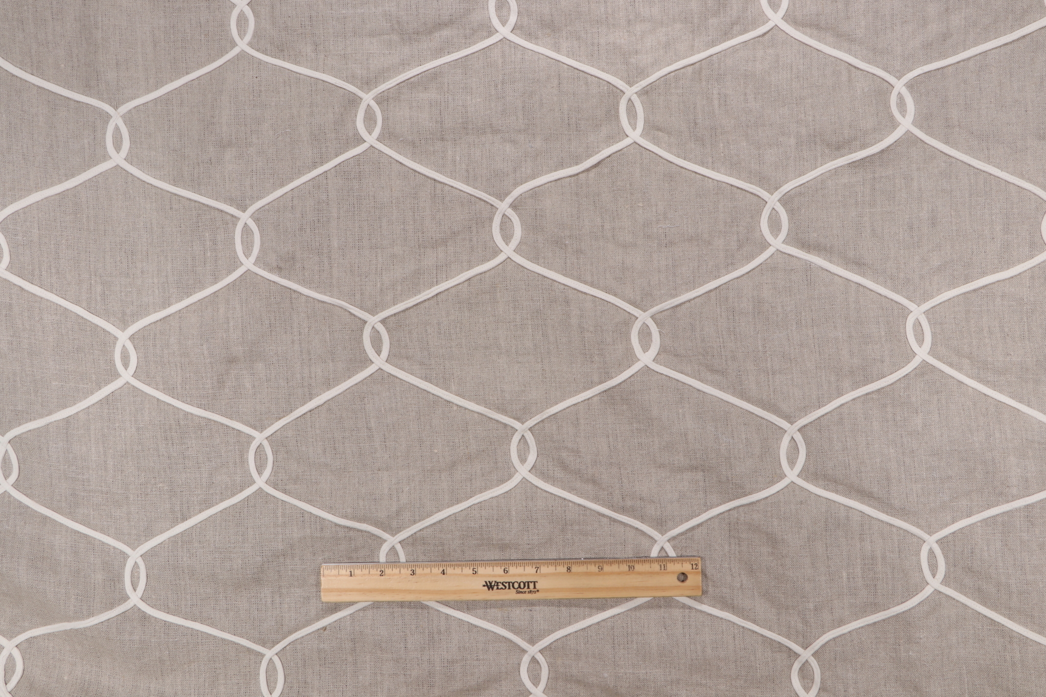 Thibaut Theresa Trellis AW7852 Embroidered Drapery Fabric in Flax is a remnant, which is sold as a whole piece.