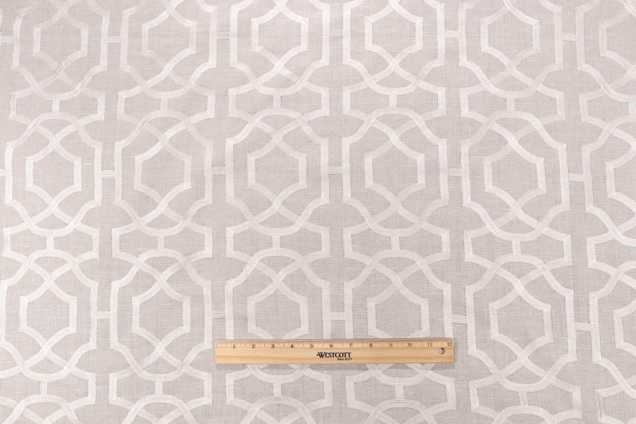 7 Yards Anna French Alston Trellis W713027 Embroidered Linen Drapery Fabric in Flax for Thibaut Details