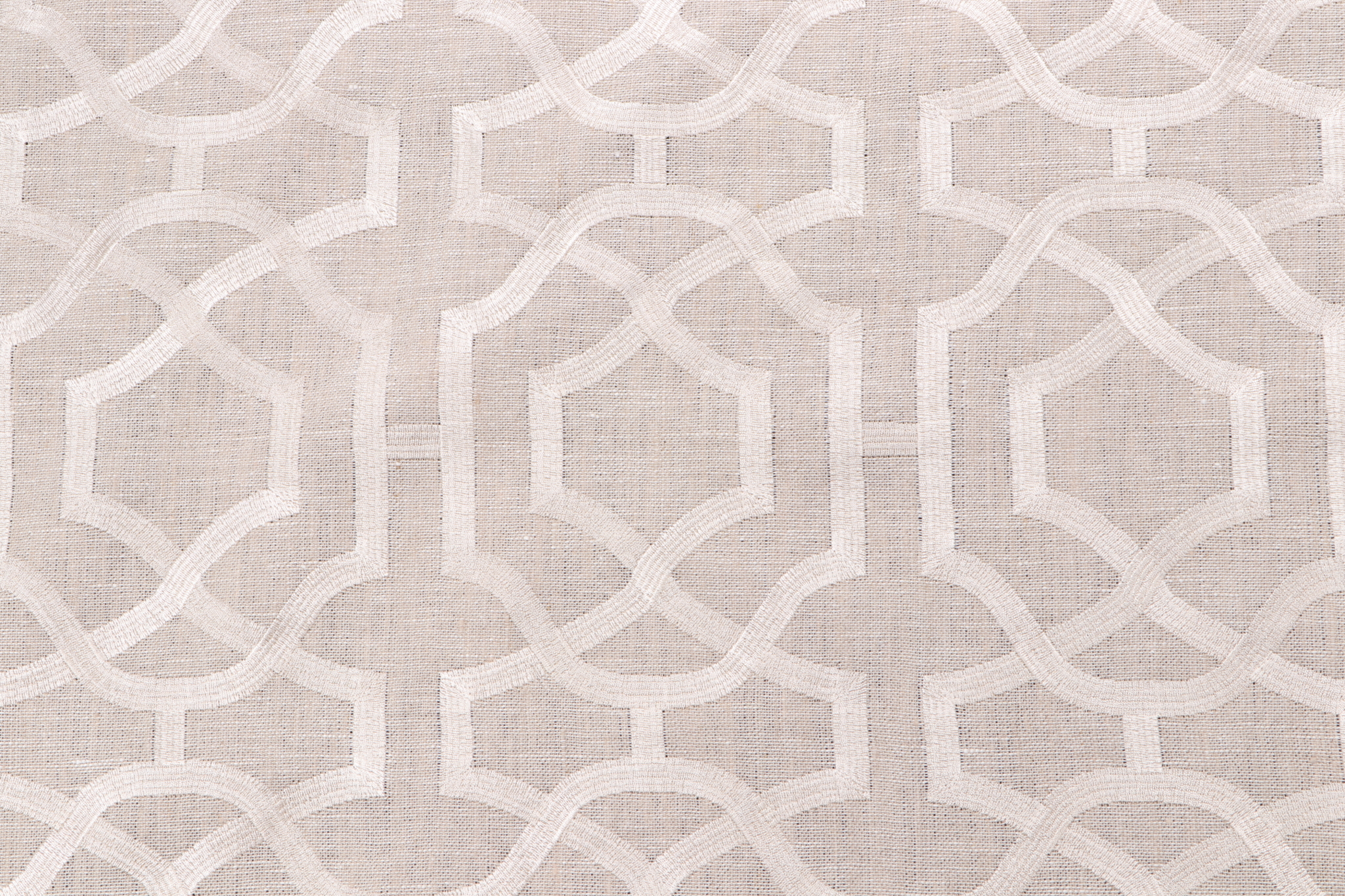 Featured here is 7 yards of Anna French Alston Trellis embroidered linen drapery fabric from Thibaut. With this amount, you can create 2 medium-length drapery panels (50 inches wide and 84 inches long) for standard 7-foot windows. Note: If you are unsure about the suitability of this fabric for your specific use case please contact us prior to ordering.
