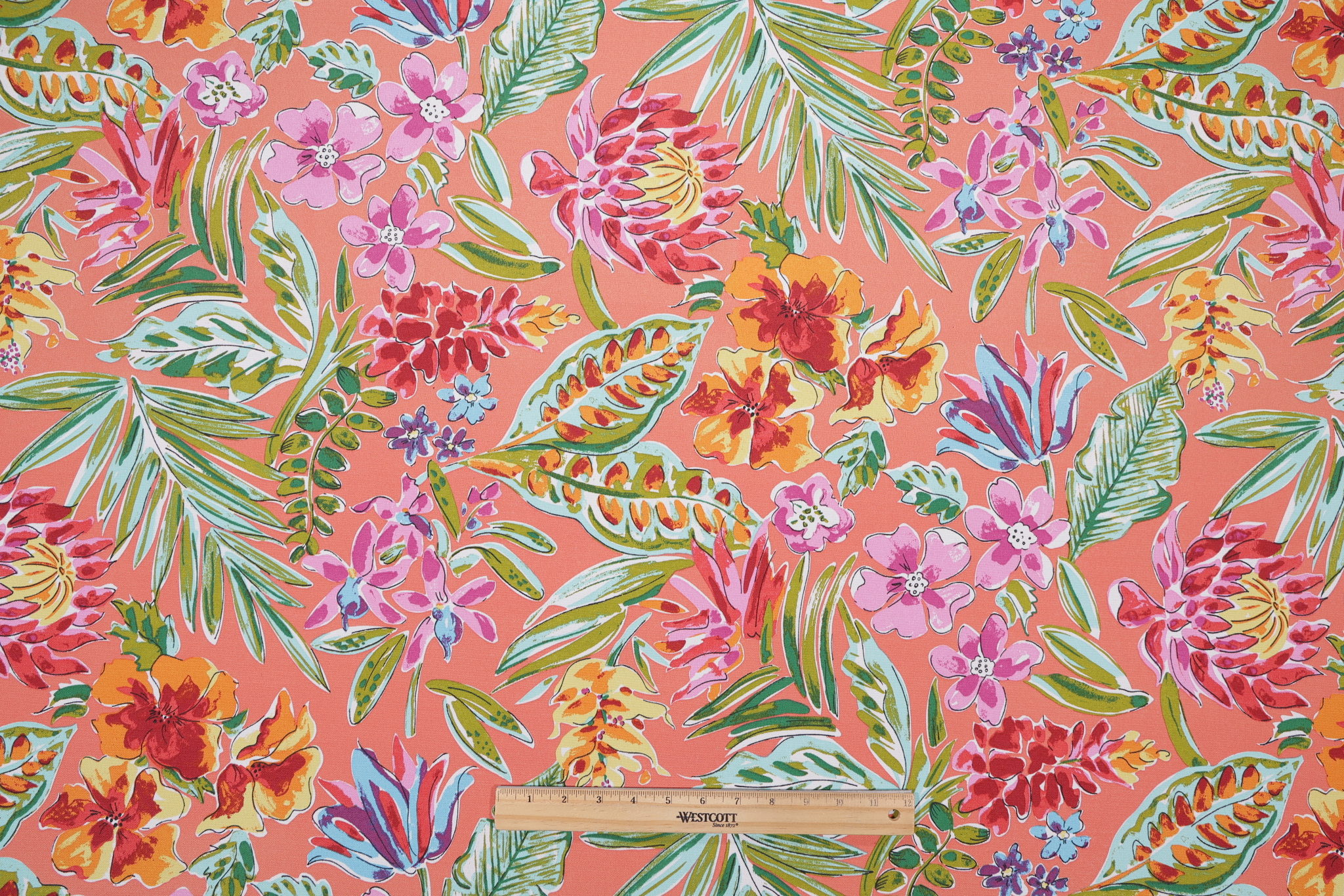 1 Yards Paradise Island Printed Polyester Outdoor Fabric in Coral Details
