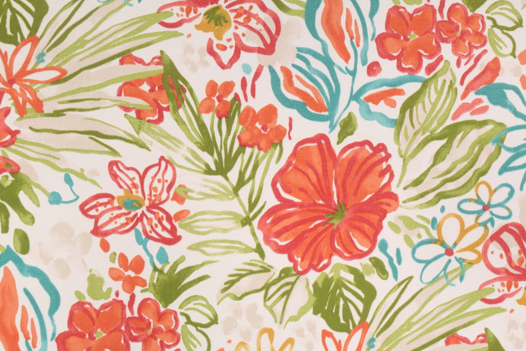 6 Yards Richloom Bright Floral Printed Polyester Outdoor Fabric. This printed indoor/outdoor fabric is perfect for any project where the fabric will be exposed to the weather. Uses include cushions, tablecloths, upholstery projects, decorative pillows and craft projects. This fabric has a slightly stiff feel but is easy to work with.