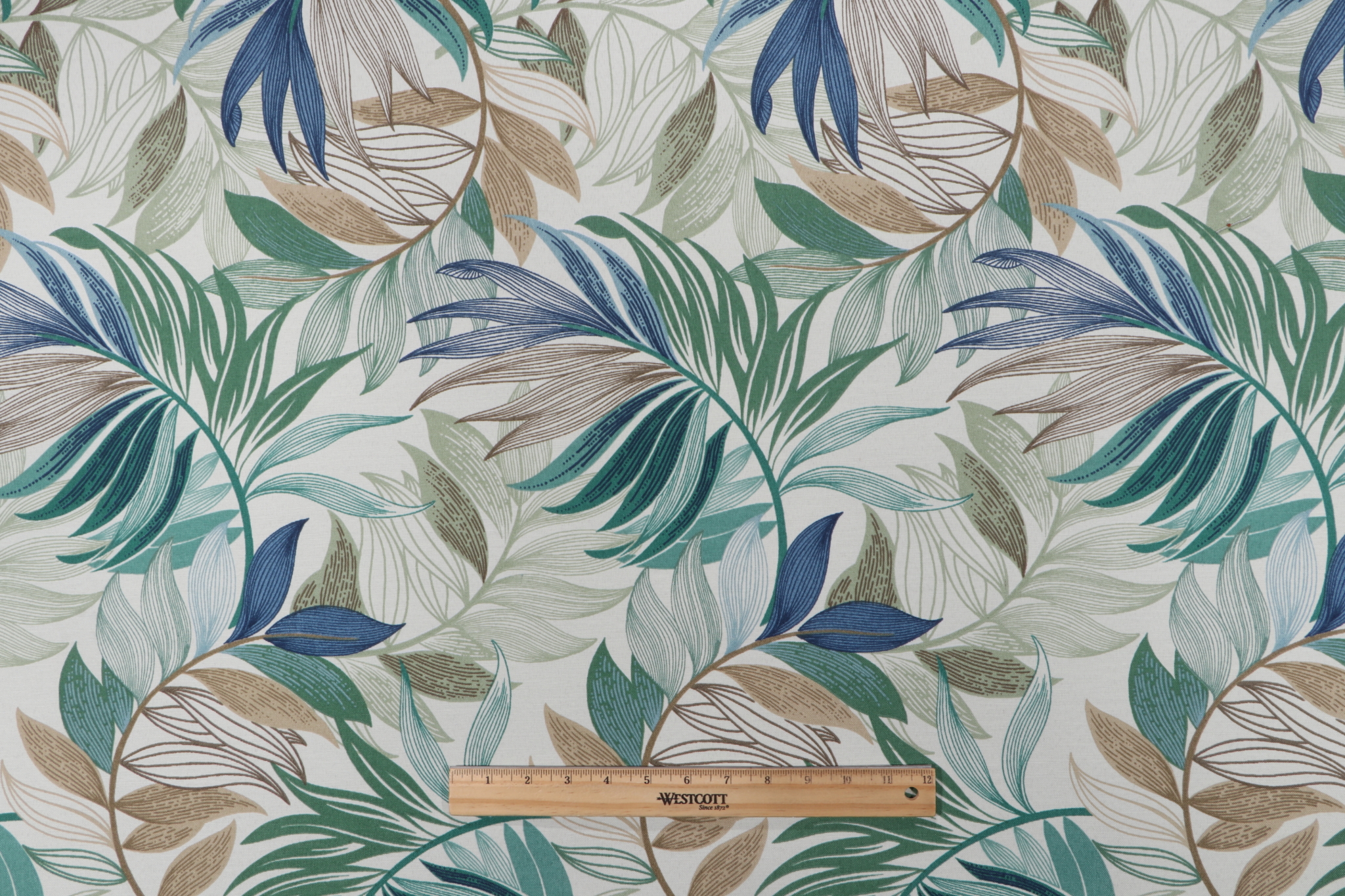 If you order a sample of Richloom Oasis Printed Polyester Outdoor Fabric in Chambray the size of the swatch you receive will be approximately 4" x 6". This is enough fabric to verify color and texture, but may not be large enough to capture an entire pattern.