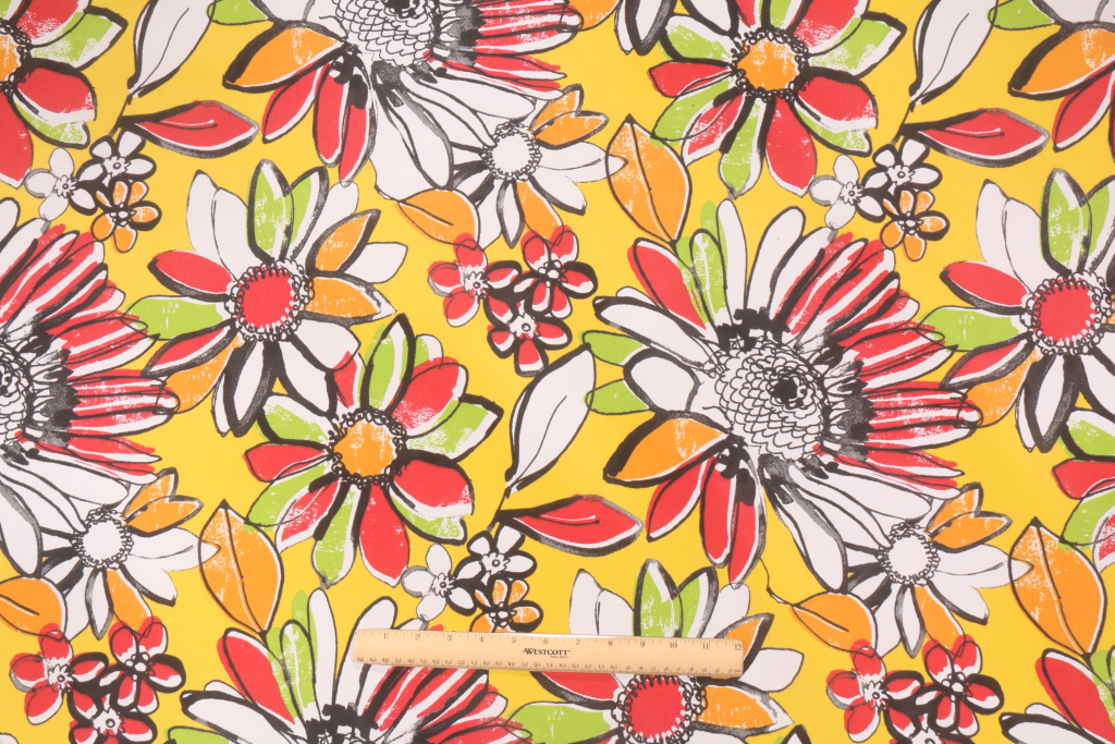 This is 2 yards of Tempo Zoe, a high-quality printed poly outdoor fabric from Terrasol. With striking tones of yellow, white smoke, tomato, gainsboro, and sand y brown, this fabric commands attention in any space. Best suited for small outdoor projects like placemats, BBQ covers, or durable outdoor table runners. Known for excellence, Terrasol fabrics provides an exceptional foundation for luxury home décor. Note: If you are unsure about the suitability of this fabric for your specific use case please contact us prior to ordering.
