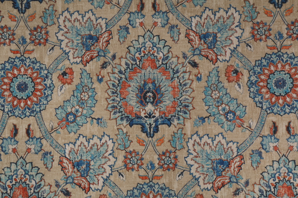 9.13 Yards Waverly Castleford Printed Polyester Outdoor Fabric in Capri. This printed indoor/outdoor fabric is perfect for any project where the fabric will be exposed to the weather. Uses include cushions, tablecloths, upholstery projects, decorative pillows and craft projects. This fabric has a slightly stiff feel but is easy to work with.
