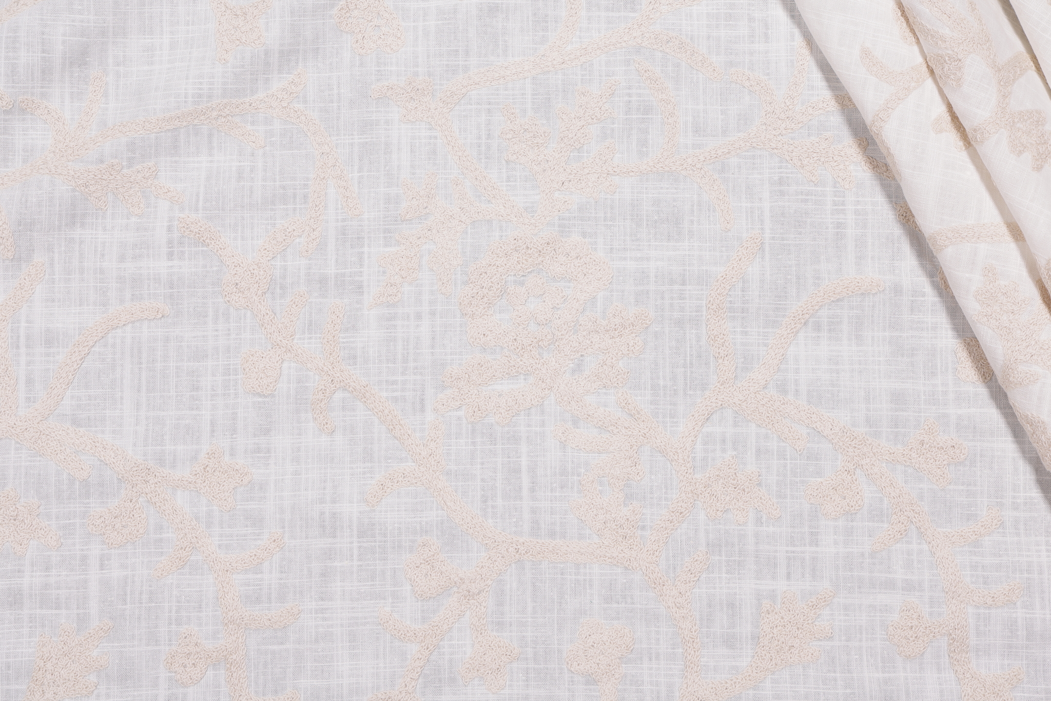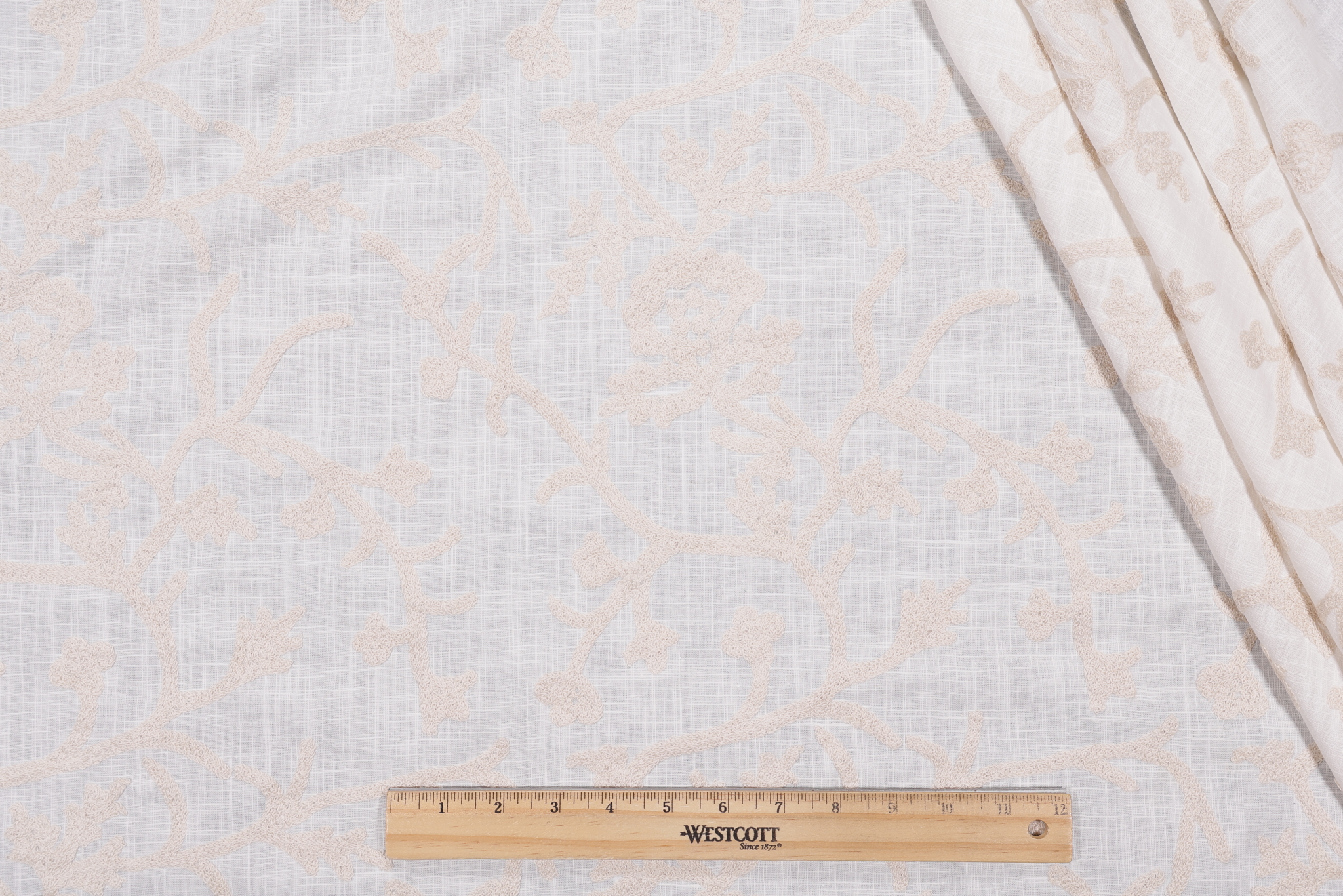 Whistler Semi-Sheer Embroidered Drapery Fabric in Snowflake is a remnant, which is sold as a whole piece.