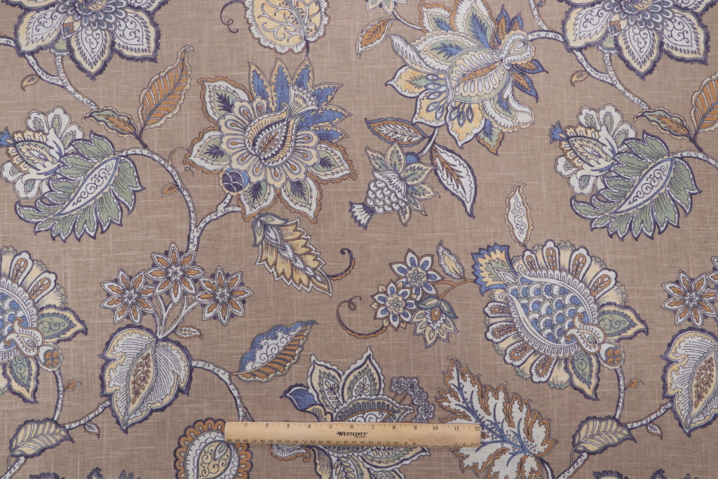 1.25 Yards Belle Maison Celine Printed Linen Blend Drapery Fabric in Stone Details