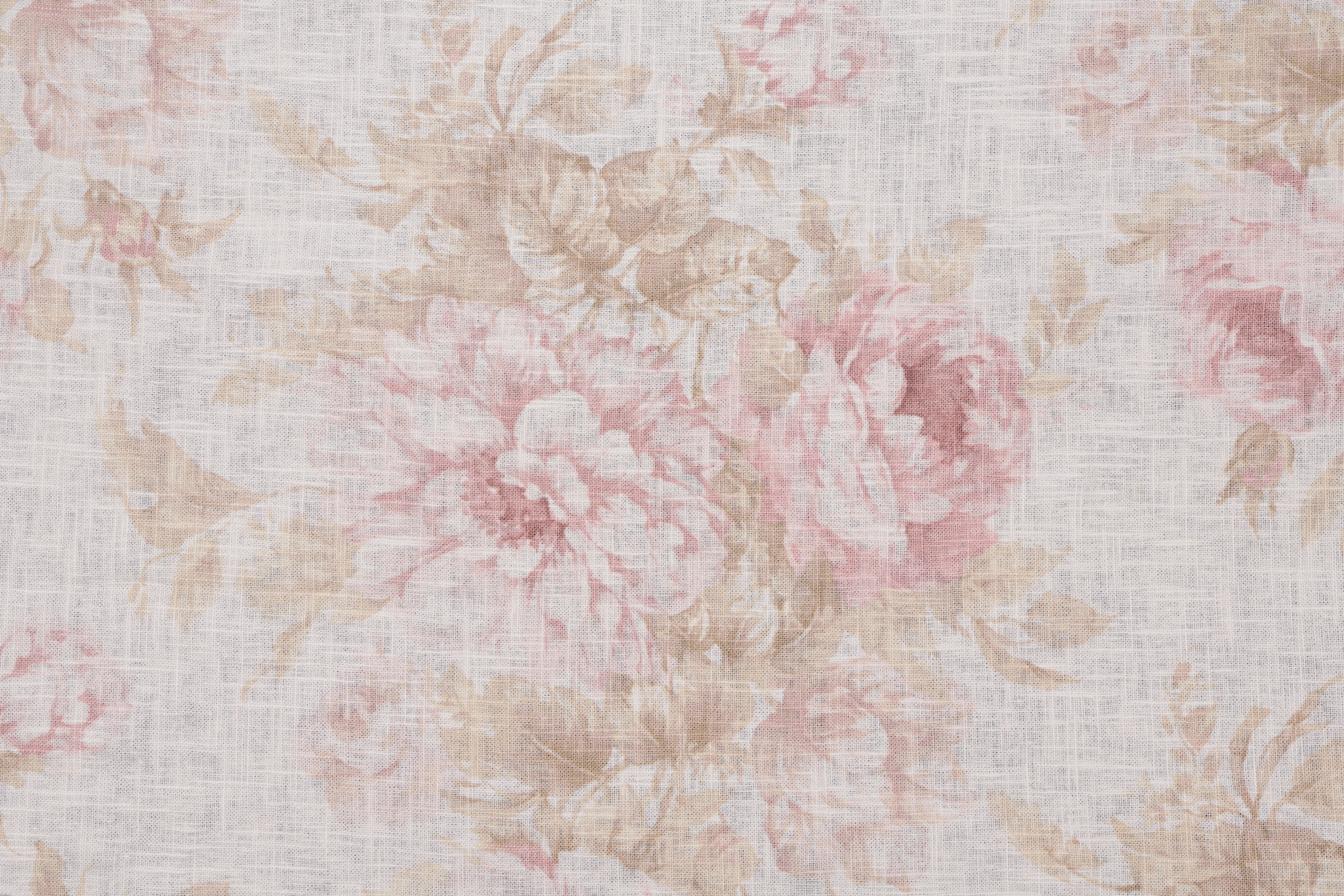 1.13 Yards Covington Jasmine Printed Linen Blend Drapery Fabric in Blush Details