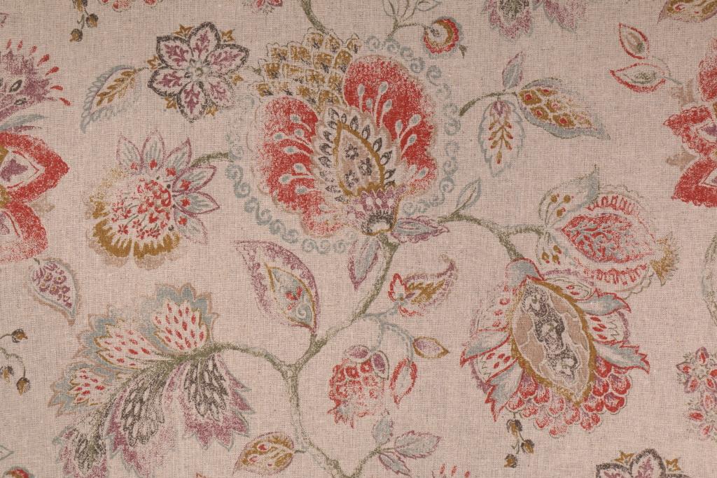 Floral Printed Linen Drapery Fabric in Natural is a remnant, which is sold as a whole piece.