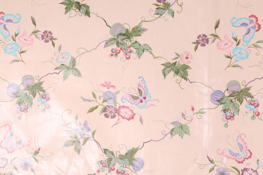 3.8 Yards Floral Printed Polished Cotton Drapery Fabric in Pink. This printed fabric is perfect for window treatments, decorative pillows, handbags, light duty upholstery applications and almost any craft project. This fabric has a soft workable feel yet is stable and durable.