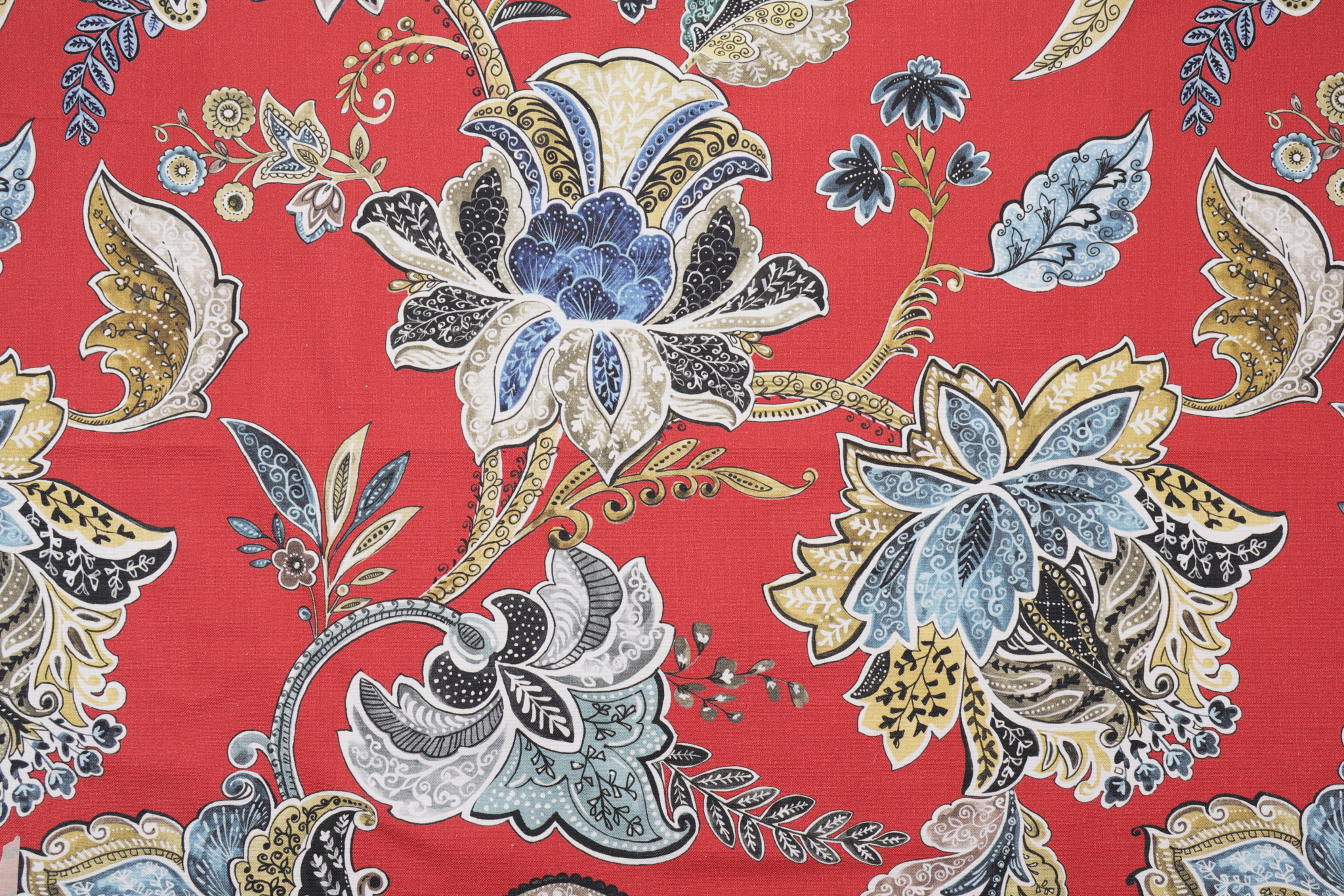 .88 Yards Hamilton Lyons Printed Cotton Drapery Fabric in Cherry Details