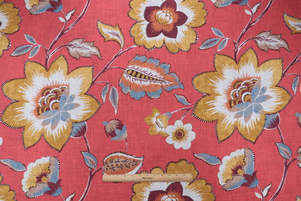 0.25 Yards Hamilton Wellington Printed Cotton Drapery Fabric in Coral Details