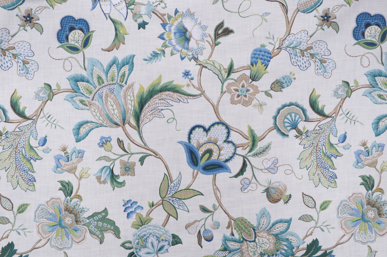 P Kaufmann Blythe Printed Cotton Drapery Fabric in Peacock is a remnant, which is sold as a whole piece.