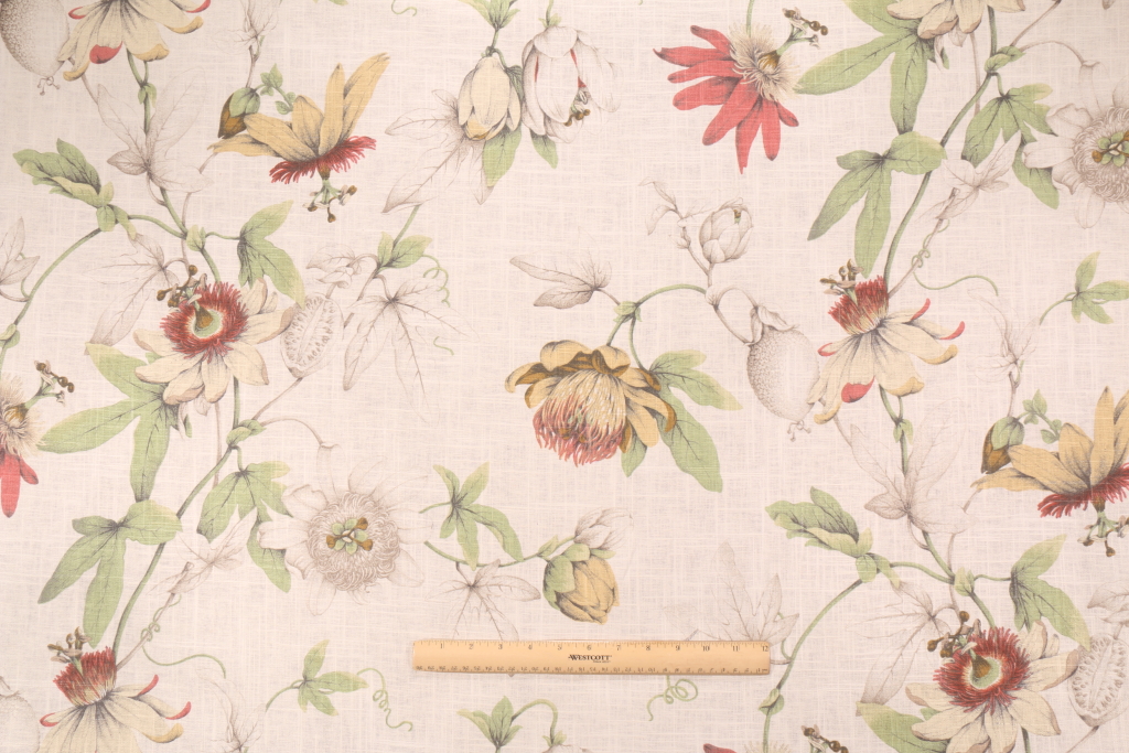 1.25 Yards P Kaufmann Country Cottage Printed Linen Blend Drapery Fabric in White Tea Details