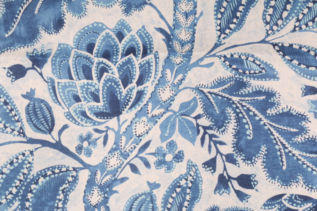 Kaufmann Java Tree Printed Linen Drapery Fabric in Lagoon is a remnant. Fabric remnants refer to leftover pieces of fabric from production runs at manufacturing sites or pieces that remain from by the yard stock. The lengths of these remnants can vary from a few inches to several yards and are typically sold at a reduced price, since they represent remaining inventory.