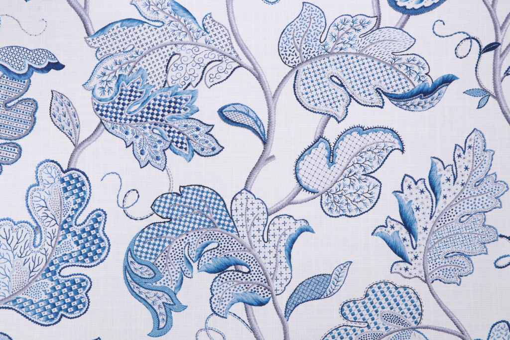 1.63 Yards P Kaufmann Luana Printed Cotton Drapery Fabric in Blue Sand Details