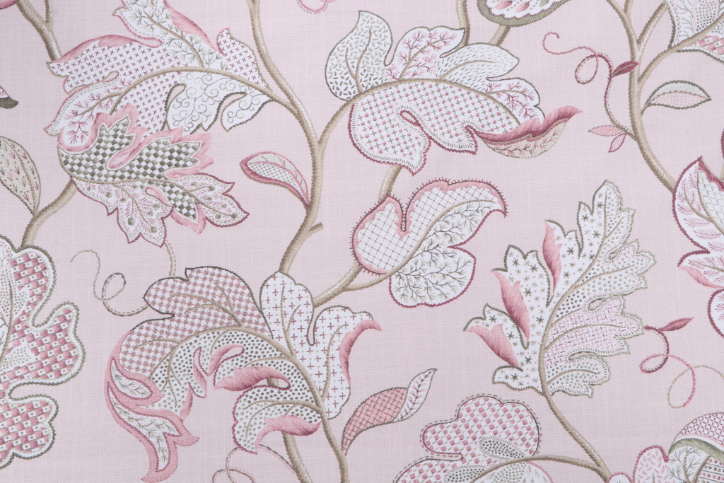 1.38 Yards Kaufmann Luana Printed Cotton Drapery Fabric in Pink Pearl Details
