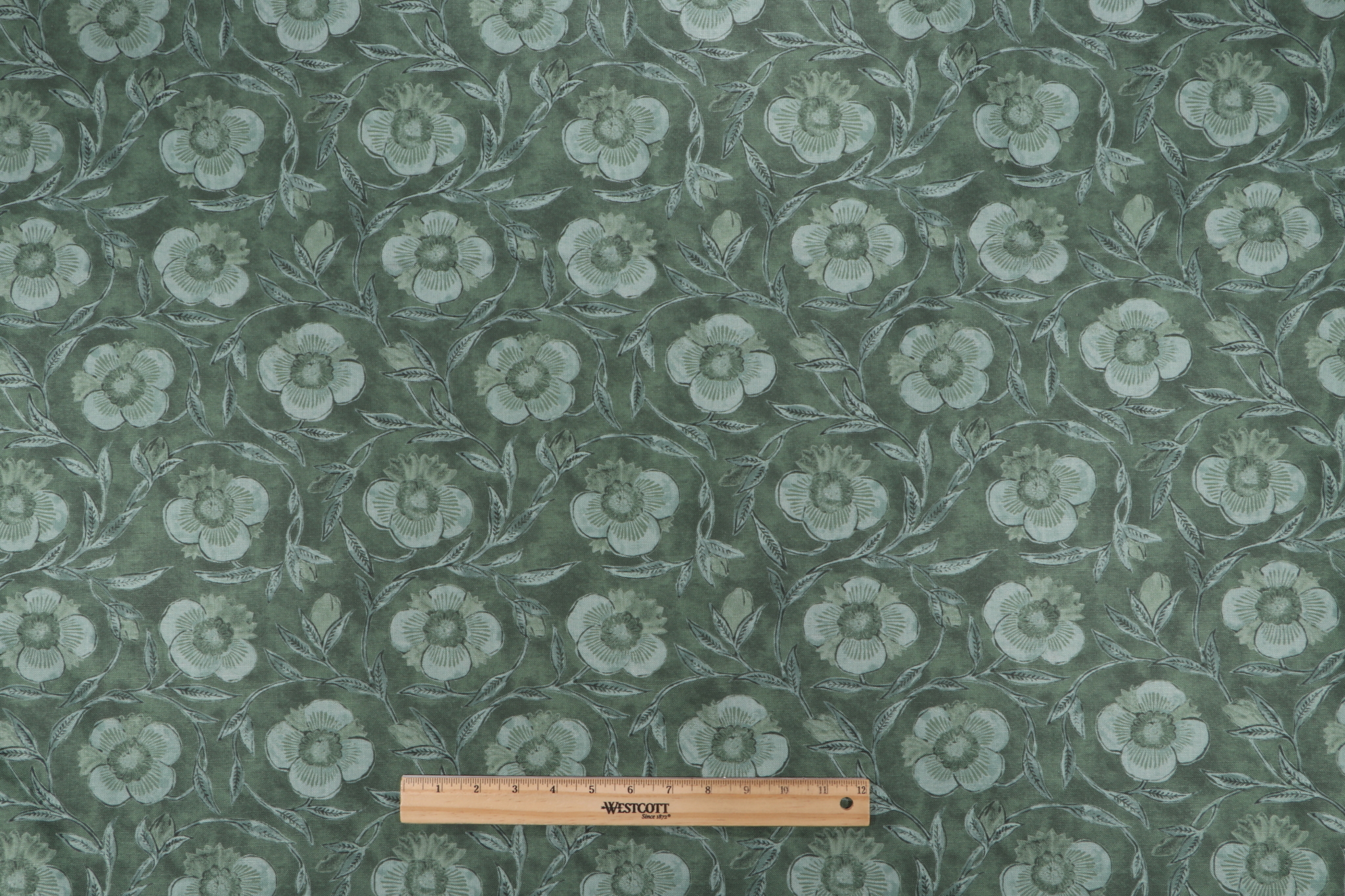 If you order a sample of P Kaufmann Pondicherry Trail Printed Cotton Blend Drapery Fabric in Juniper the size of the swatch you receive will be approximately 4" x 6". This is enough fabric to verify color and texture, but may not be large enough to capture an entire pattern.